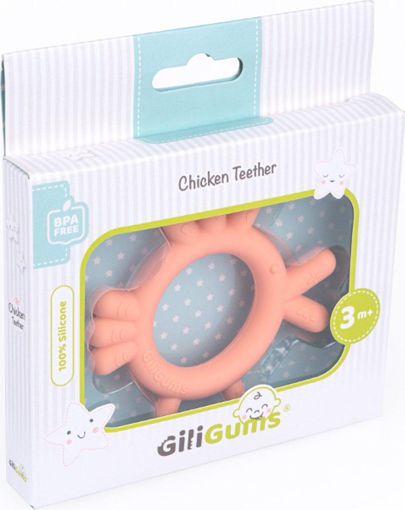 GiliGums Dětské silikonové kousátko Chicken Teether, 3m+, meruňková, 1 ks