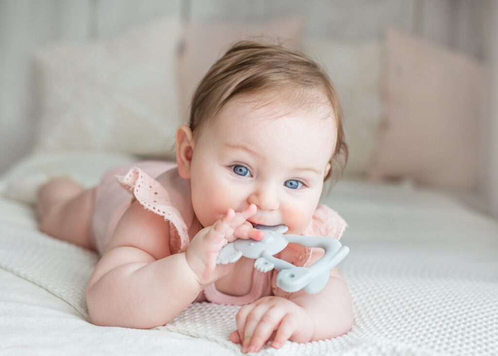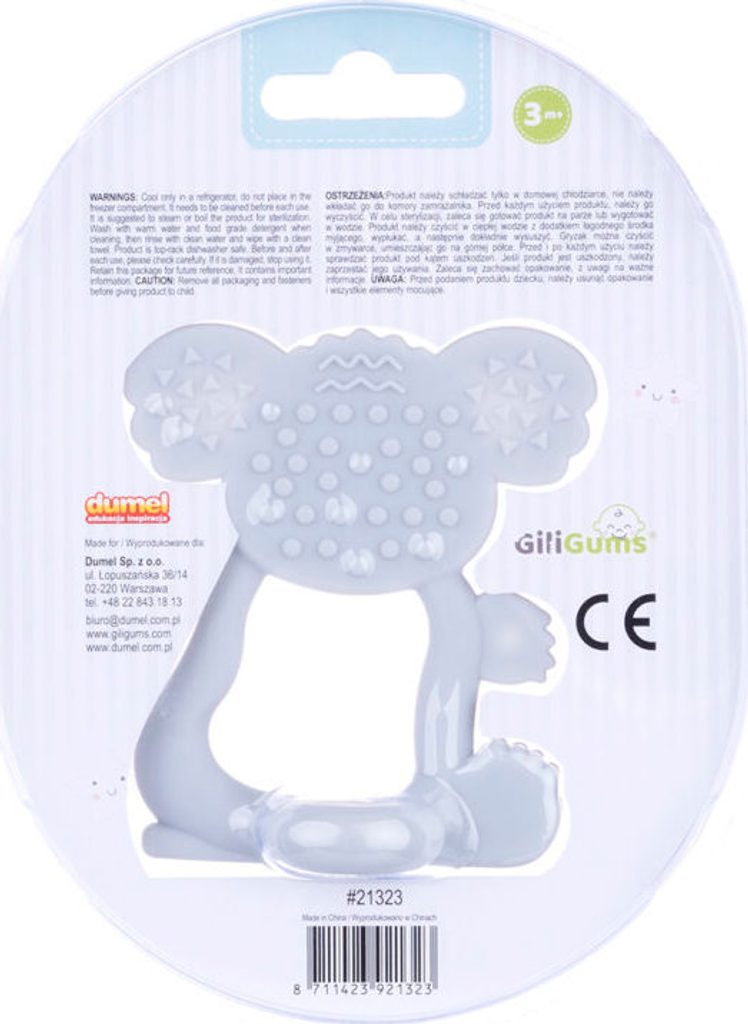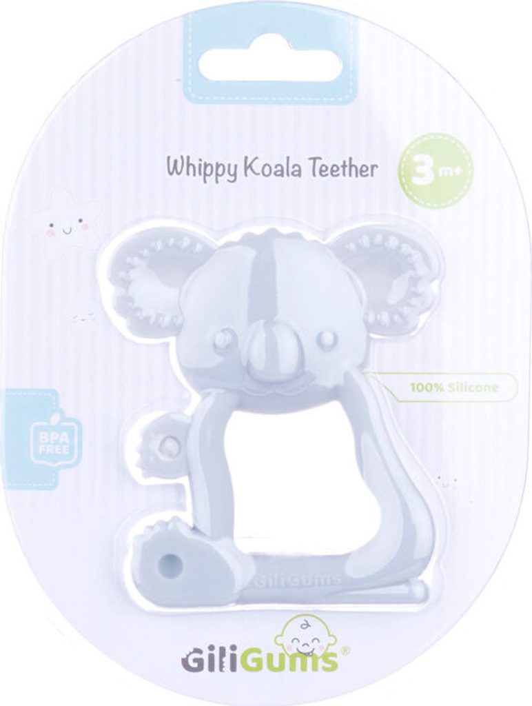 Silikonová koala od Giligums, která přijela na misi utišit bolest při prořezávání zoubků. Aby batole nemělo problémy s udržením kousátka v rukojetích, má speciální otvor, který umožňuje bezpečné uchopení. Různé textury také umožní rozvoj hmatu. Je vyrobena z měkkého silikonu, díky čemuž je pro miminko zcela bezpečná.