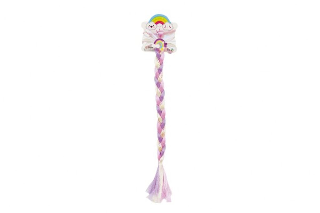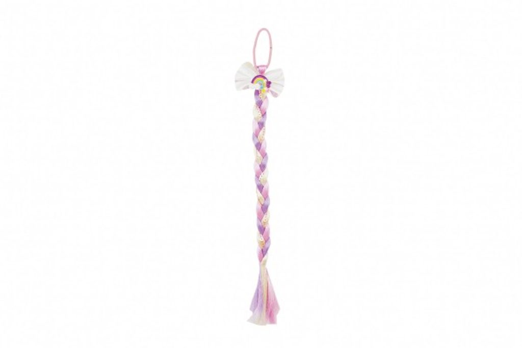 Snad každá holčička si přeje mít barevné dlouhé vlasy. Dopřejte jí to díky barevnému duhovému příčesku, který je připevněn na gumičce do vlasů. Barevný copánek s flitry je dlouhý cca 38cm. Příčesek může být také vhodným doplňkem ke karnevalovému kostýmu.
