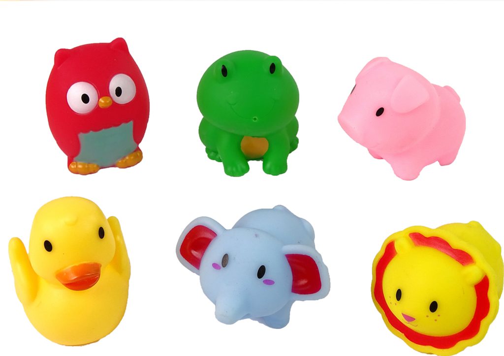 Všechny prvky mají malinké otvory, do kterých zatéká voda a po zmáčknutí hračky z ní vtipným způsobem vystříkne voda, která dítě jistě rozesměje.