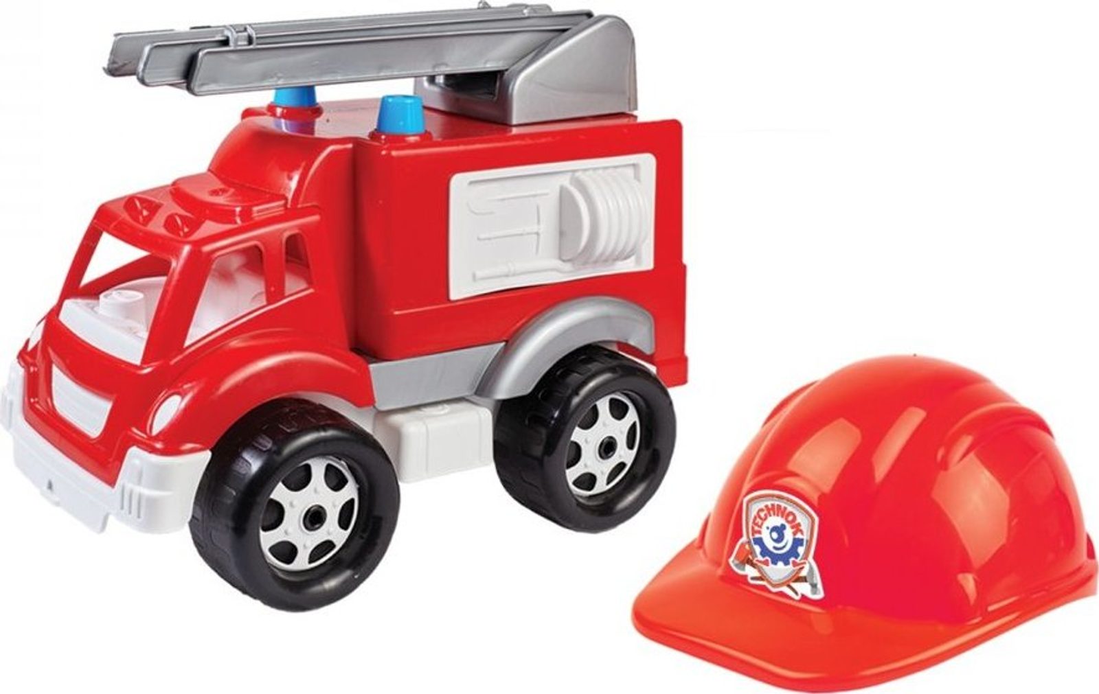 Každý malý kluk snil o tom, že se stane hasičem. Vůz si získá srdce mnoha krotitelů ohně a jistě poskytne dlouhou a vzrušující zábavu. Přilba, která je součástí sady, vám jistě usnadní stát se skutečným hasičem. Sada je ideální pro hraní doma i na zahradě. Hasičské auto má nastavitelný žebřík, který lze prodloužit a zkrátit.