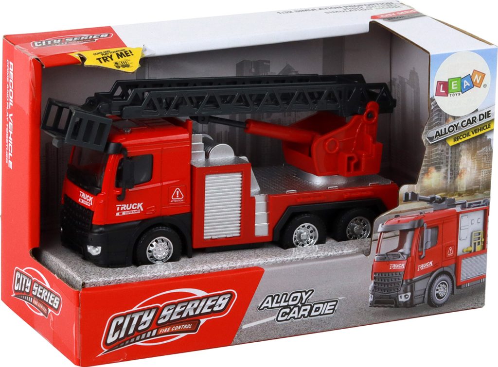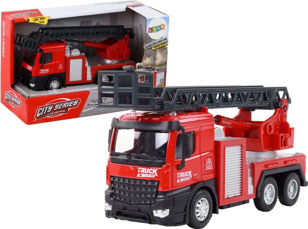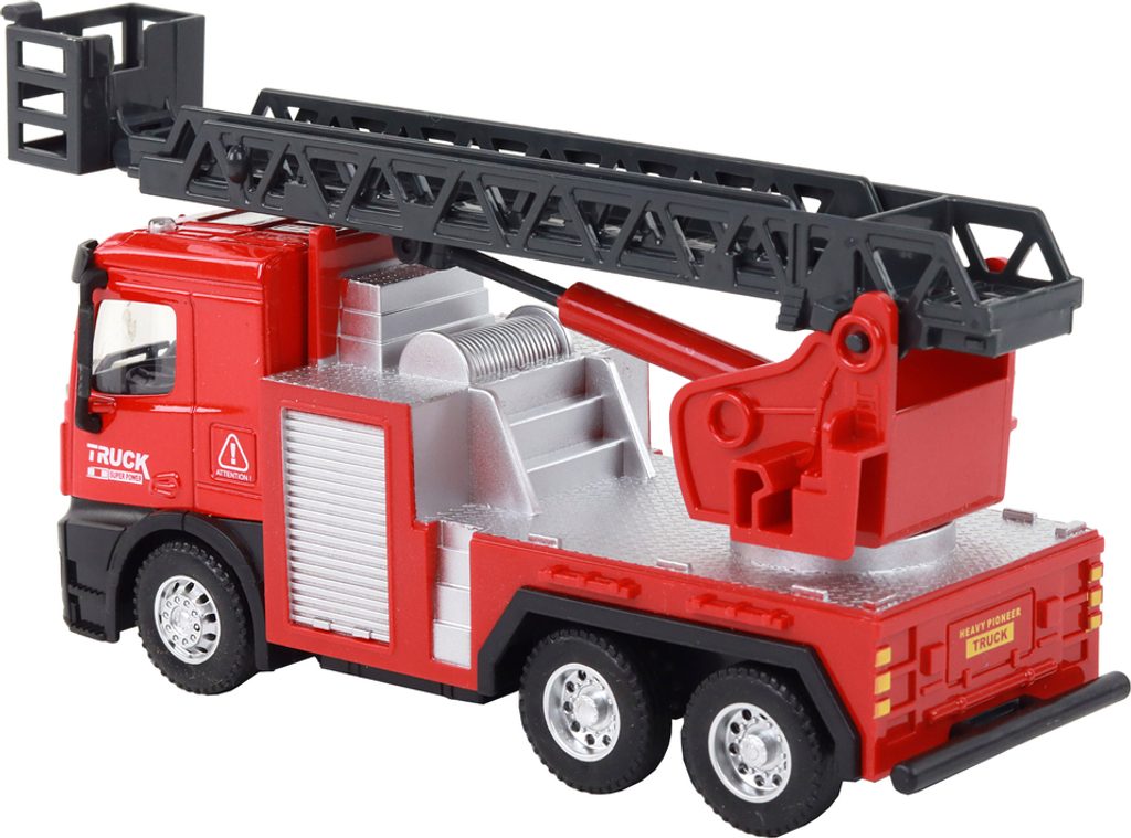 Dopřejte svému dítěti nekonečnou zábavu s naším červeným hasičským autem 1:32. Realistické, na setrvačník a výsuvným žebříkem. Ideální hračka pro malé hasiče!