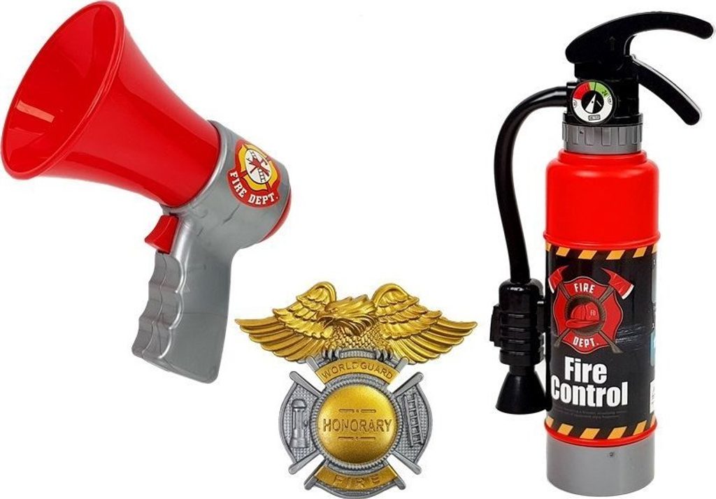 Megafon je napájen třemi bateriemi AG13, které jsou součástí sady. Svítilna je napájena dvěma 1,5V AA bateriemi. Hračka hasič je určena pro děti od 3 let . Věříme, že se tato hračka bude skvěle hodit jak na doma, tak i jako originální doplněk na kostýmovou párty ve školce a škole. Sada je certifikována CE .