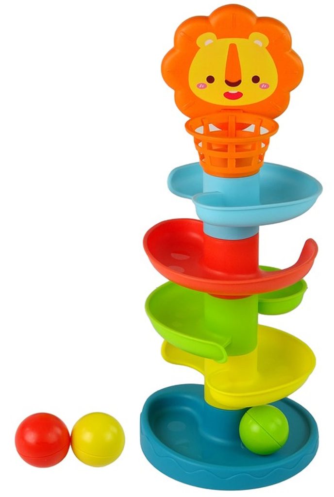 Naučná hračka ve tvaru skluzavky s 5 patry. V horní části je umístěna hlava lvíčka a malý košíček. Míčky mají uvnitř chrastící prvky. Hračka tak rozvíjí zrak dítěte a zároveň mu pomáhá stimulovat sluch. Barevné míčky slouží k trénování dovednosti chytání stejně tak rozvoji koordinace a svalové síly. Všechny prvky hračky jsou vyrobeny z certifikovaného a atestovaného plastu. Určeno pro děti od 18 měsíců věku.
