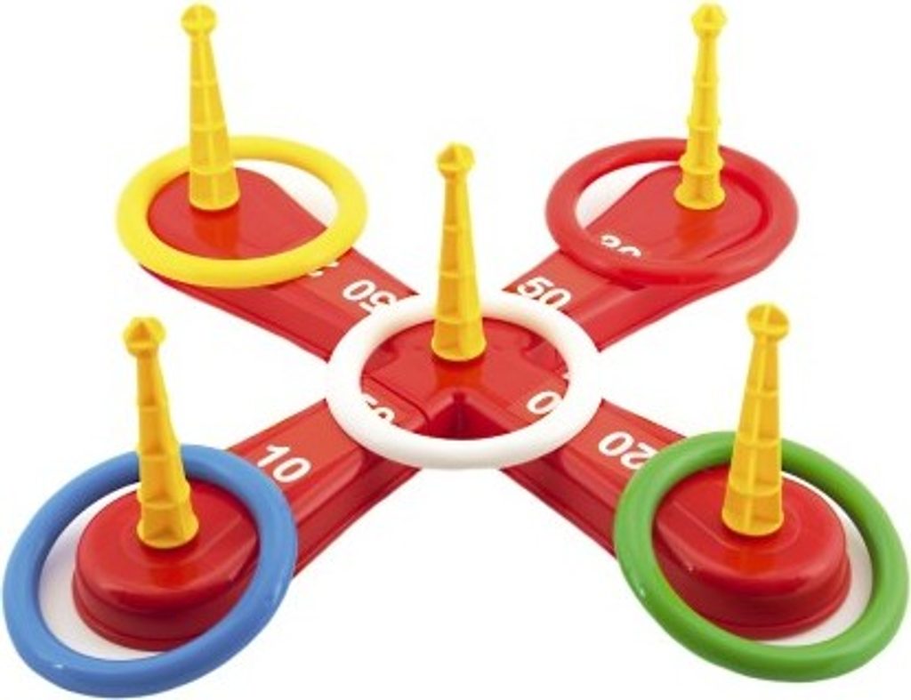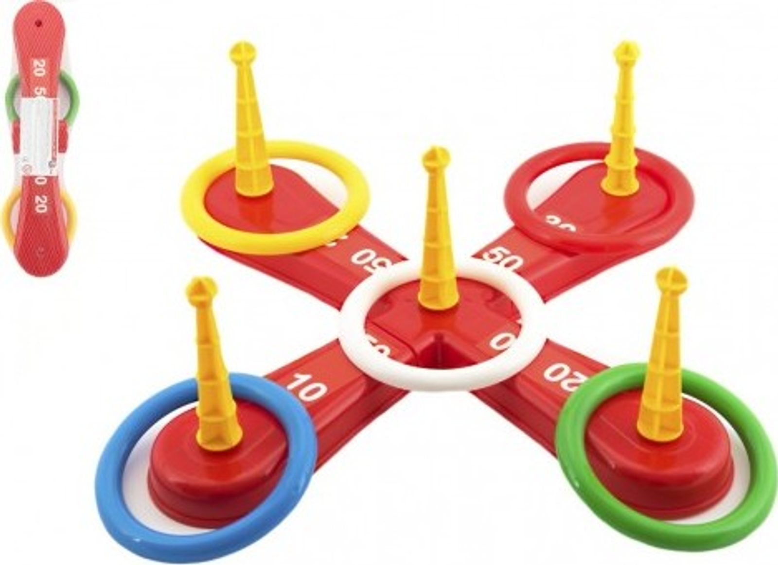 Zábavná hra, při které se hází kroužky na kříž. Balení obsahuje kříž s pěti hroty a pět barevných kroužků. Jednotlivé dílky jsou vyrobené z plastu. Tato hra se bude líbit zejména nejmenším dětem, které mohou sbírat body za každý hod, kdy se jim podaří umístit kroužek na hrot. Natrénují si také přesnost a trpělivost.