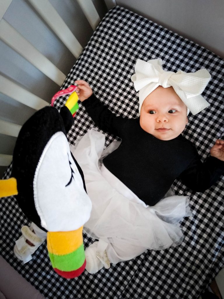 Kontrastní barvy zobáku upoutávají pozornost zraku miminka.