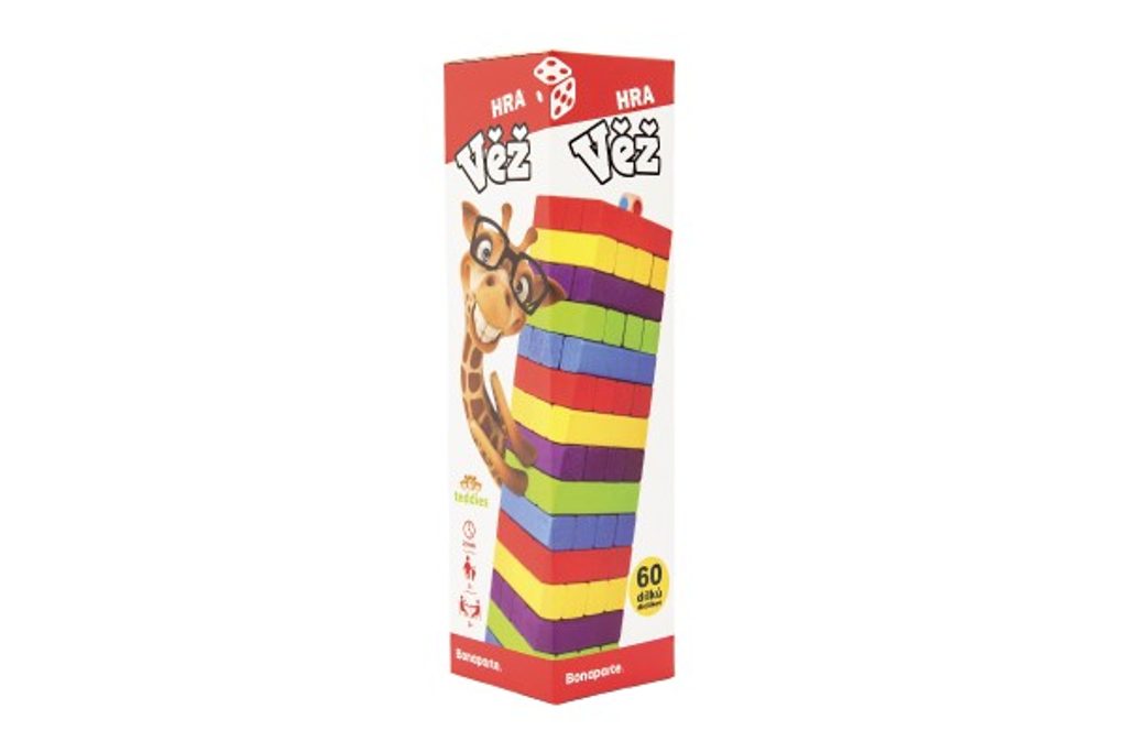 Klasická stolní hra, která nabízí mnoho zábavy a vtipných okamžiků. Na stole se postaví věž ze všech dílků (60 ks). Hráči se střídají v pořadí a postupně se snaží opatrně jeden dílek z věže vytáhnout, aniž by věž spadla. Prohrává ten hráč, kterému věž spadne! Otestujte svoji šikovnost a trpělivost, pravidla jsou jednoduchá.
