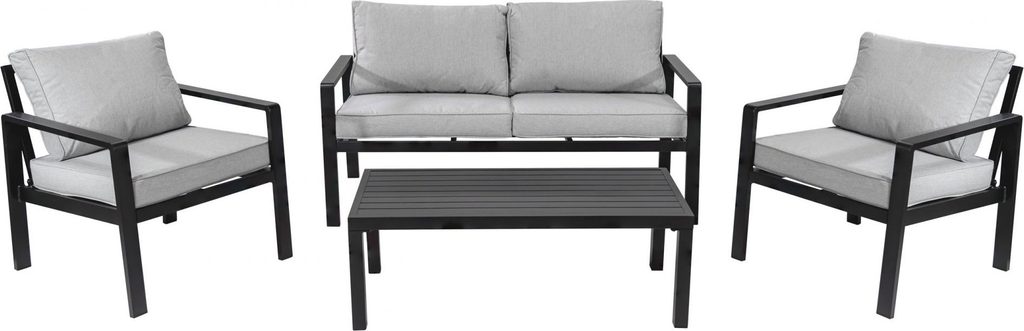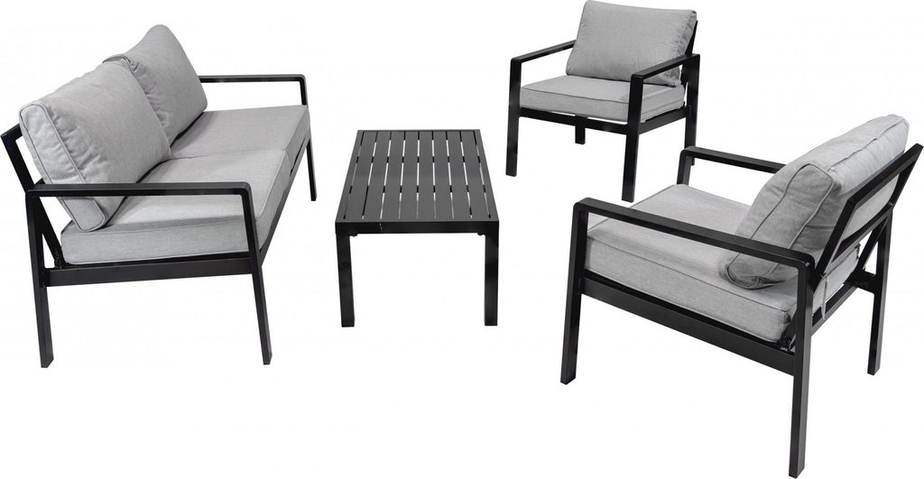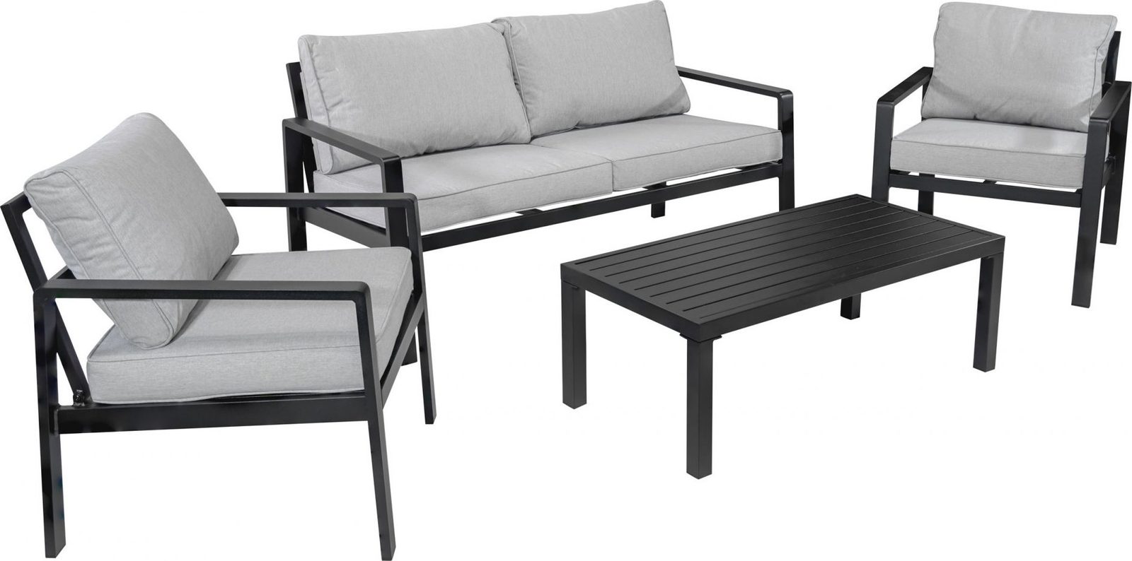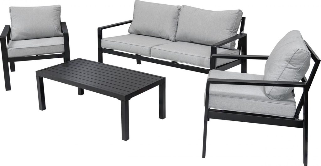 Konstrukce všech prvků soupravy je usazena na HLINÍKOVÝCH rámech, což zajišťuje, že souprava je lehká a odolná vůči povětrnostním vlivům. Díky použití prvotřídního hliníku je souprava zcela odolná vůči korozi. Souprava obsahuje 8 měkkých polštářů z bavlny, které se velmi snadno udržují v čistotě. Potahy sedáků mají zipy, takže je lze sejmout a vyprat. Vložky polštářů jsou vyrobeny z odolné čalounické pěny o tloušťce přibližně 9 cm. Rozměry Pohovka