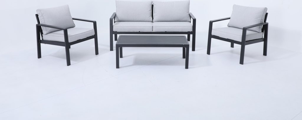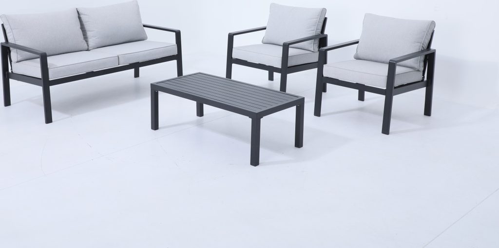 Popis Hliníkový zahradní nábytek Pohovka + dvě křesla + stůl Sada hliníkového zahradního nábytku se skládá z: