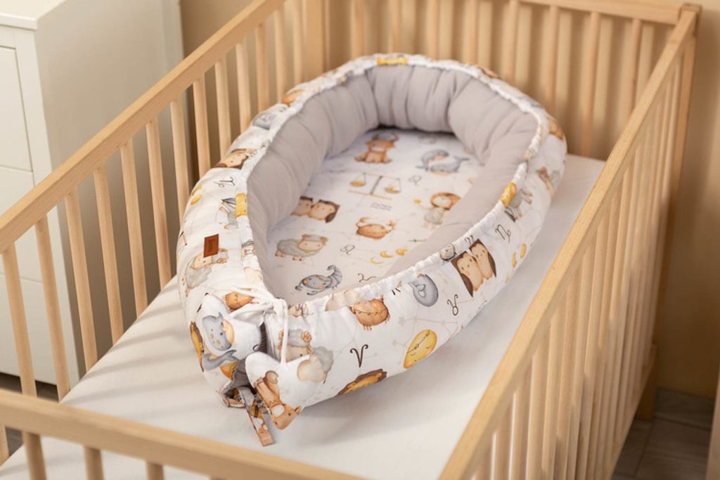 Hnízdečko pro miminko z mušelínu, Zvířátka, šedá