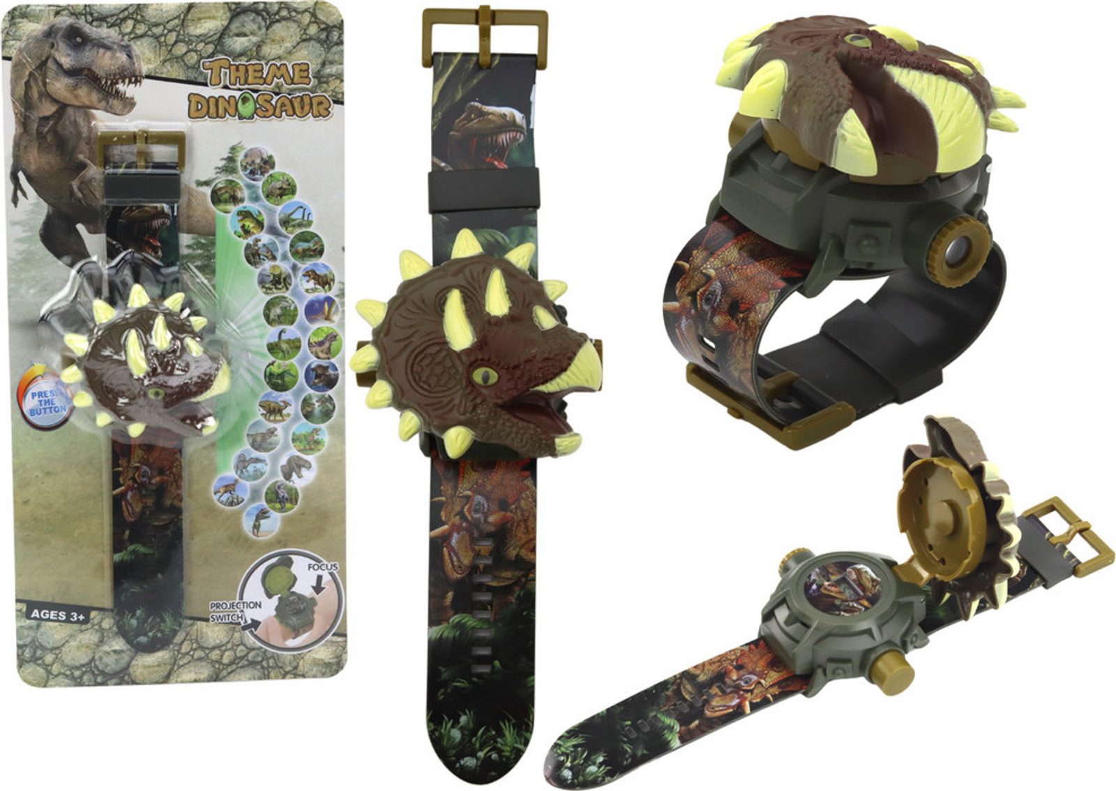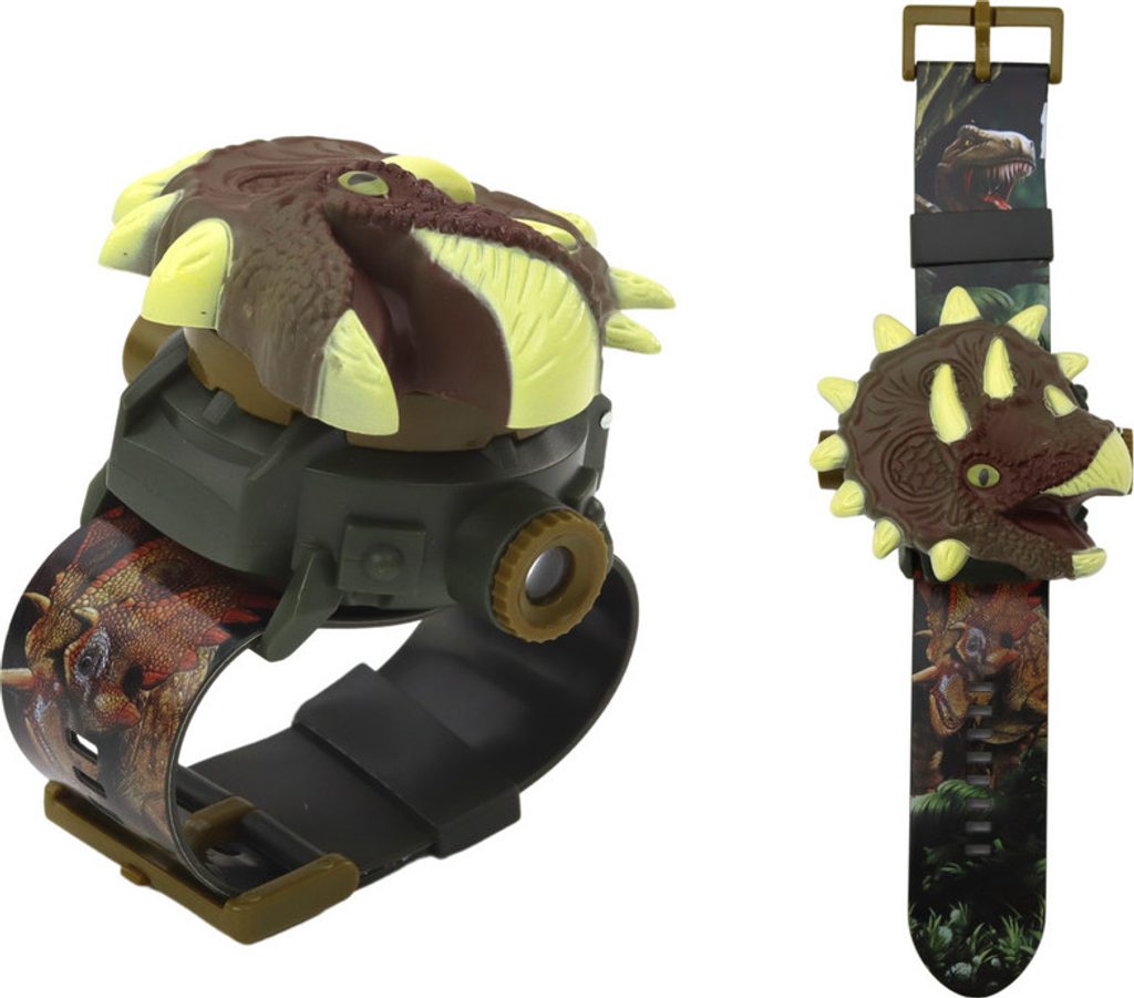 Mimořádné hodinky s 3D projekcí, které vás zavedou do fascinujícího světa dinosaurů! Tyto unikátní hodinky vám nejen ukážou aktuální čas, ale poskytnou také nezapomenutelný zážitek v podobě 24 snímků prehistorických tvorů, které lze navrhnout pomocí speciálního projektoru v hodinkách.