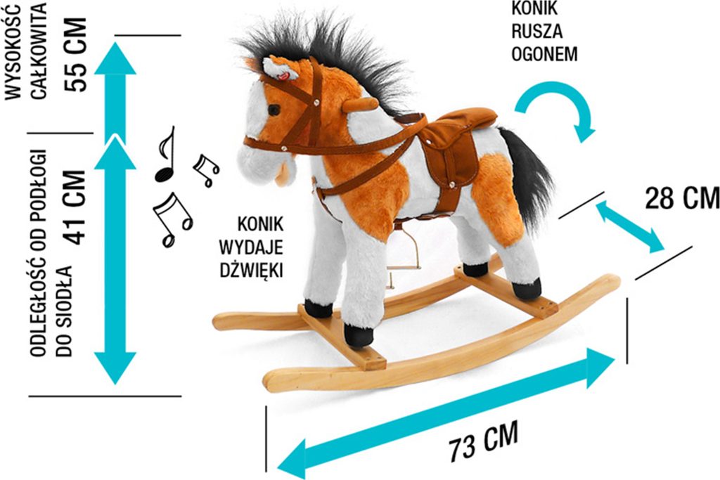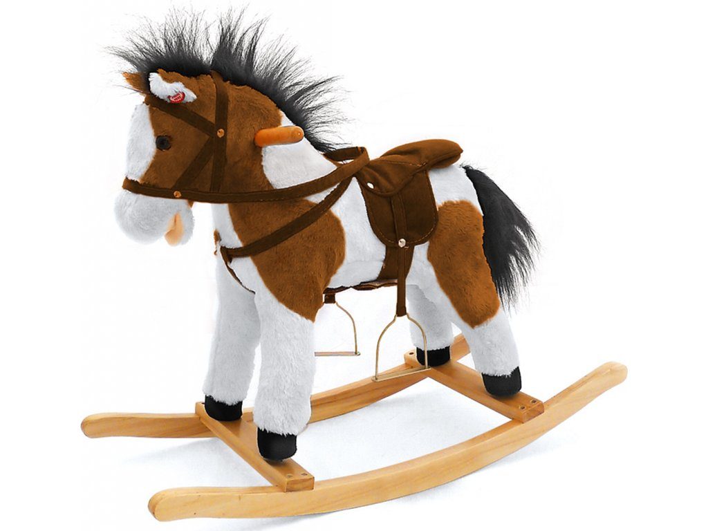 Houpací koník Milly Mally. Je balen samostatně v krabici, která může být použitá i jako dárkové balení. Aktuálně jsou koníky bez červené stuhy. Baterie nejsou součástí balení. Charakteristika: - koník pohybuje ocáskem i tlamou a řehtá - příjemný plyšový materiál - koník má sedlo s třmeny, uzdu a dřevěné rukojeti - možnost demontáže houpacího rámu - baterie (3x AA) nejsou součástí hračky - nosnost do 30 kg Rozměry bez houpací lišty: 60x28x55 cm