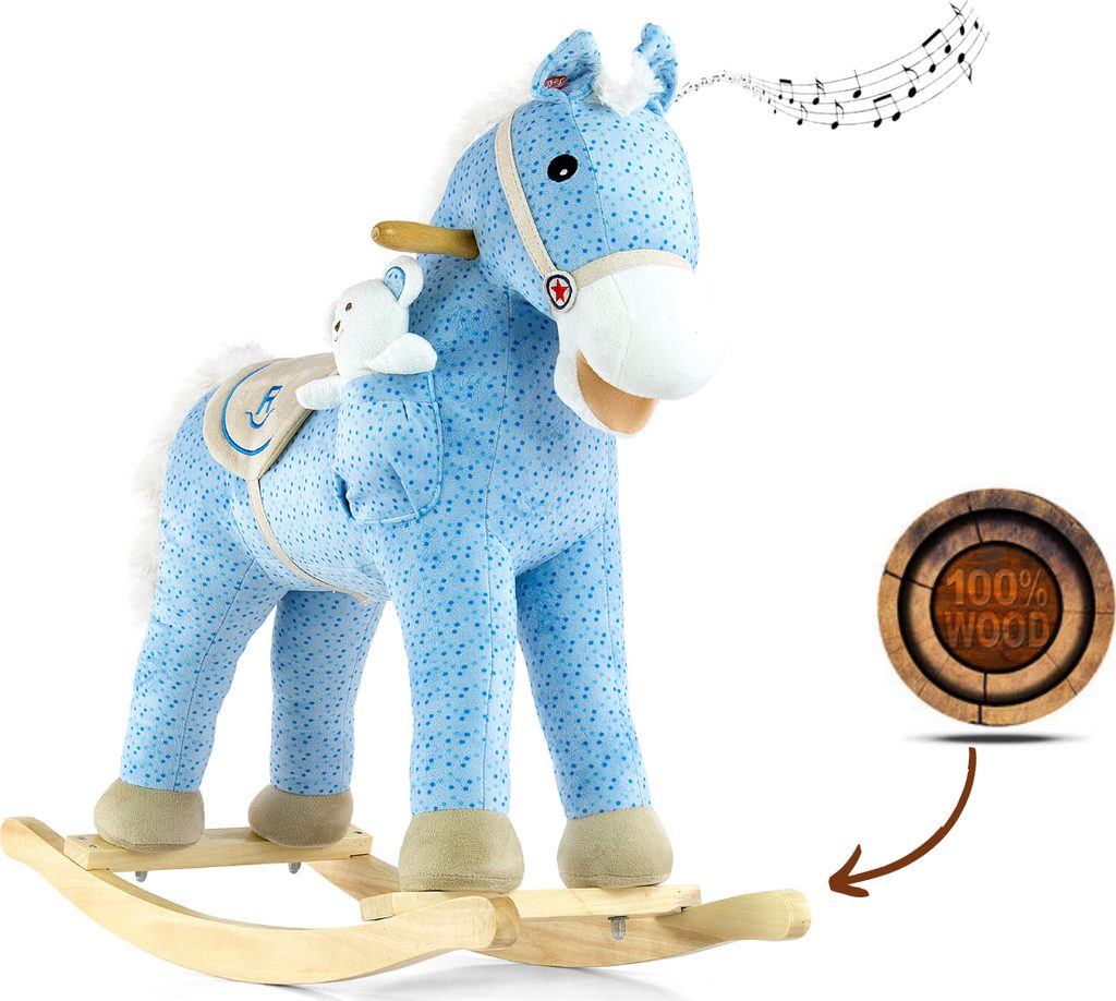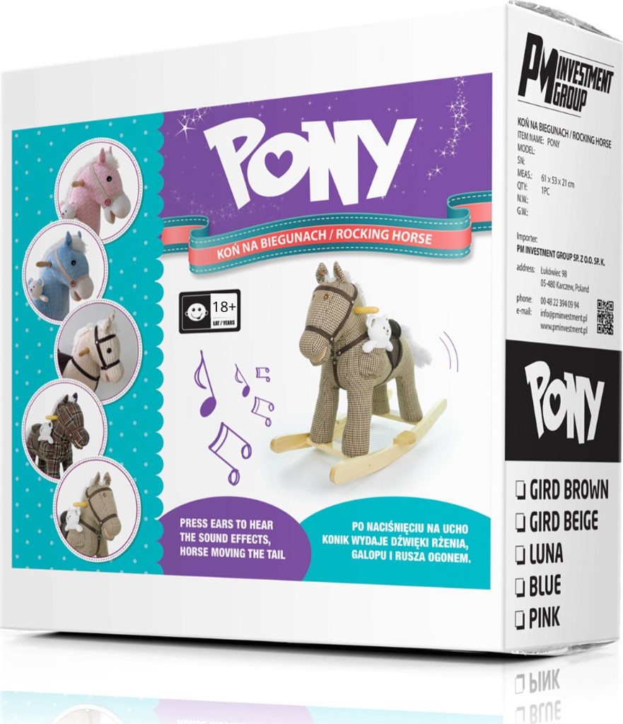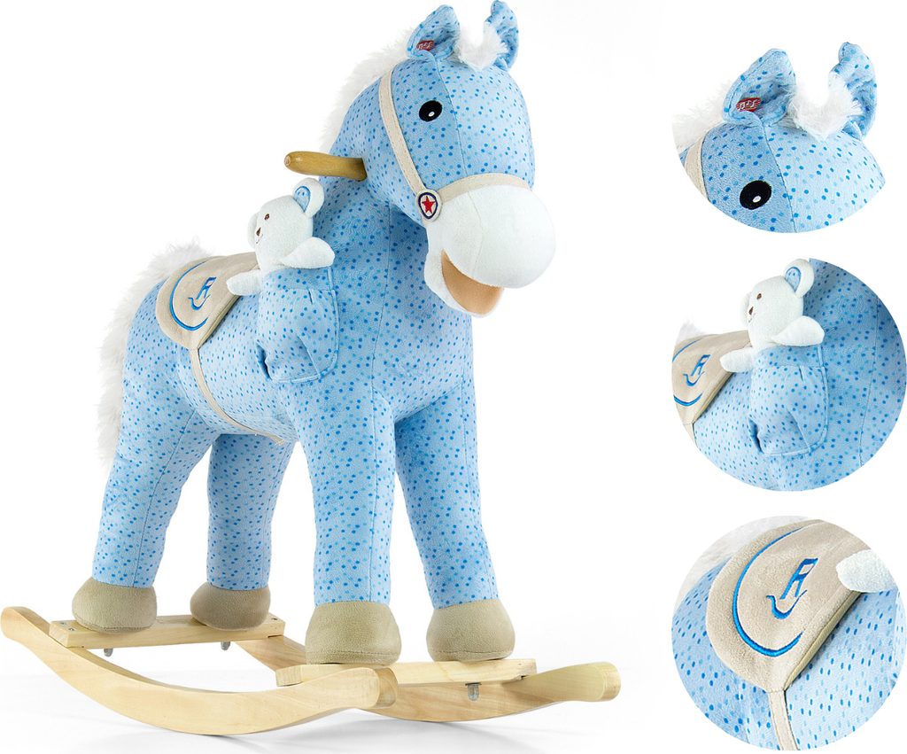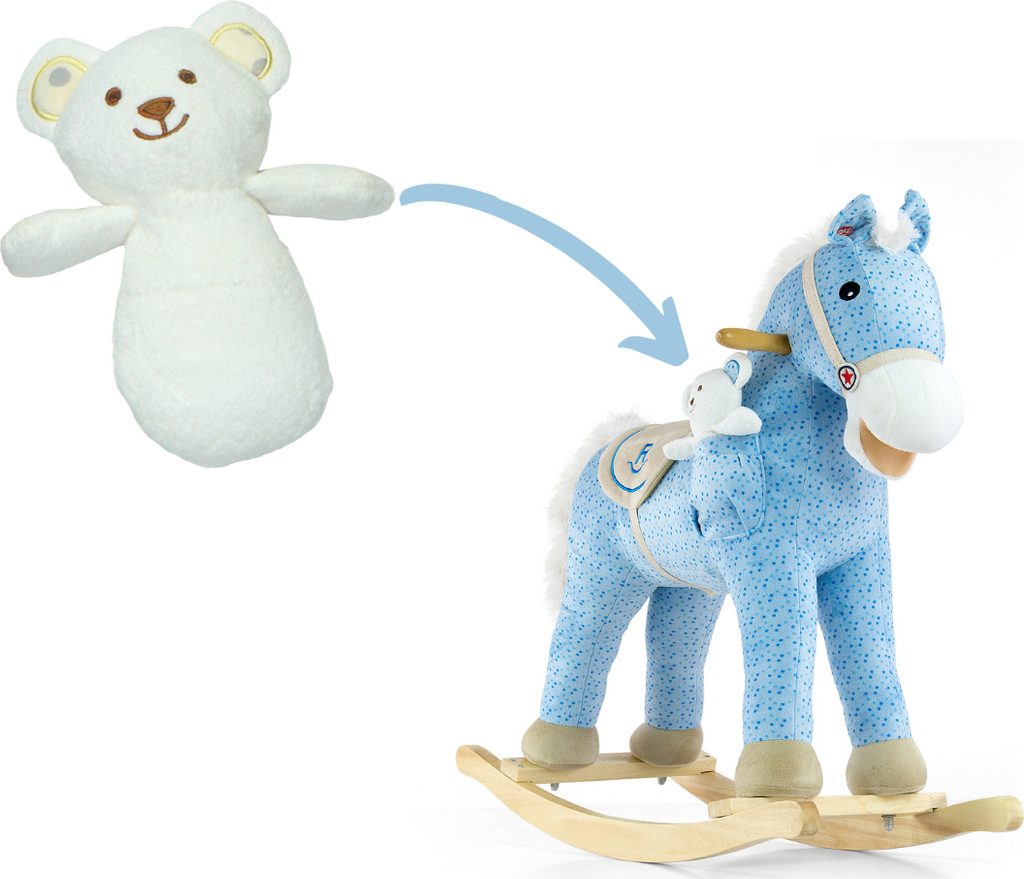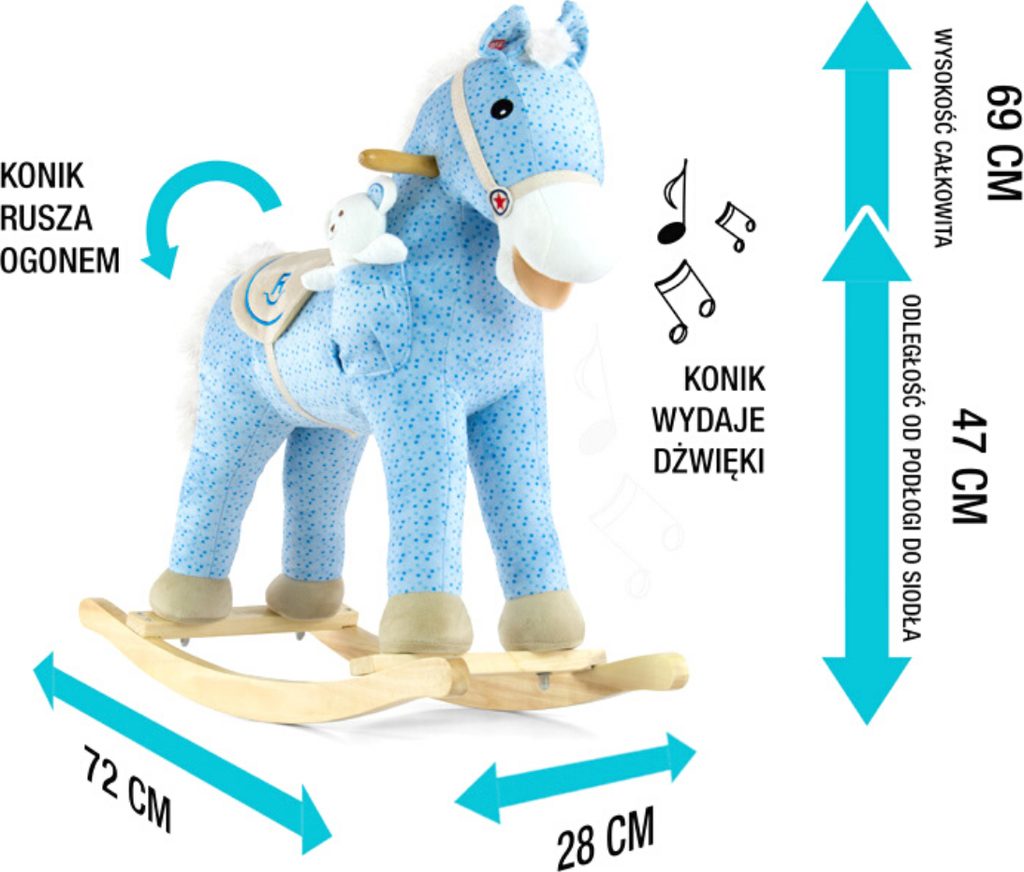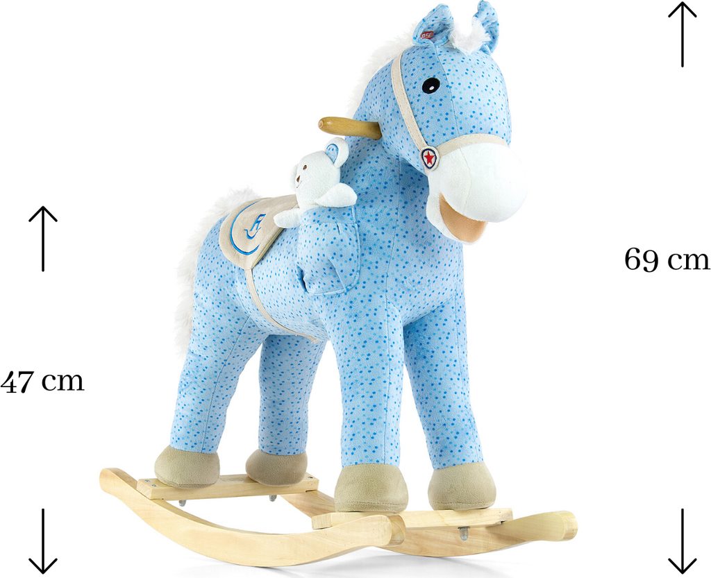 Neobyčejně krásný houpací koník Milly Mally. Koník je balen samostatně v krabici, která může být použitá i jako dárkové balení.Baterie nejsou součástí balení. Charakteristika: - koník pohybuje ocáskem i tlamou a řehtá - příjemný materiál - koník má sedlo, dřevěné rukojeti a dřevěné stupátka no nohy - plyšová hračka - houpací dřevěné lišty - možnost demontáže houpacího rámu - baterie (3x AA) nejsou součástí hračky - nosnost do 30 kg Rozměry: cca 74x28x58 cm