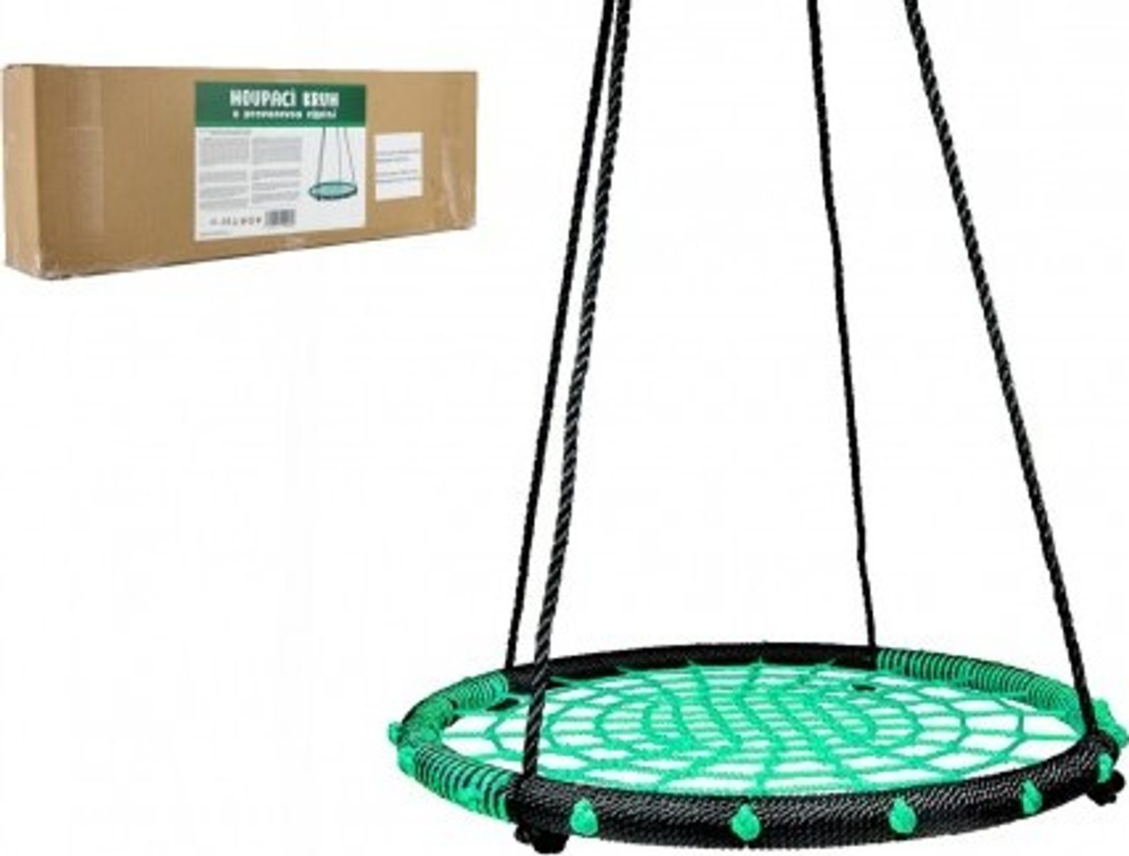 Houpačka se může používat pouze vsedě nebo vleže. Zavěšuje se za kovové kroužky, které jsou provlečené na závěsných lanech.