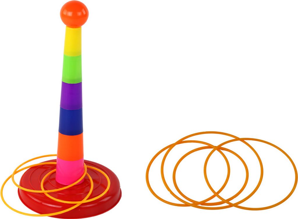 Přidejte vzrušující hru Toss to the Target do svého zábavního repertoáru! Tato kompletní sada zajistí nezapomenutelné chvíle zábavy pro celou rodinu. Sada obsahuje základnu, 6 číslovaných kelímků a 4 kroužky v různých velikostech.