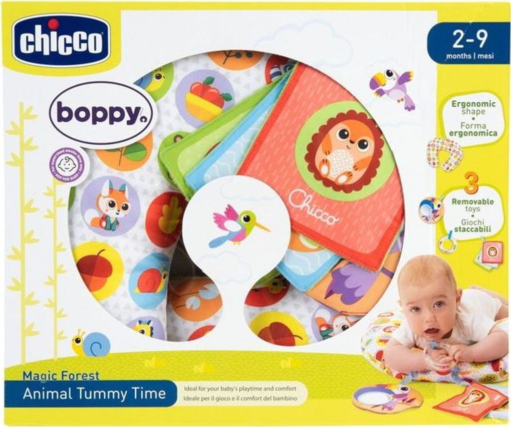 Měkký polštář pro bezpečnou hru na bříšku, jak doporučují dětští lékaři.