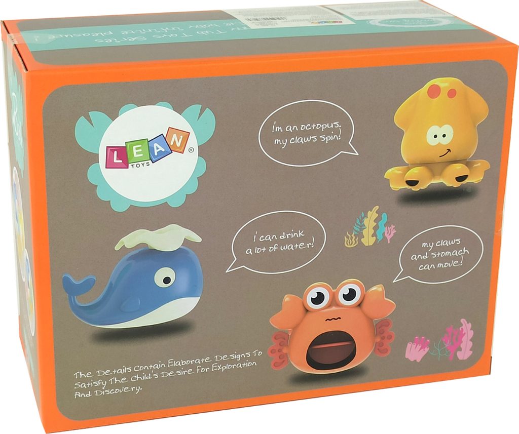 Hračka do vany se třemi mořskými tvory. Vodní efekty a rotace chapadel udělají z koupání fascinující zážitek. Pro děti, které si rády hrají ve vodě.