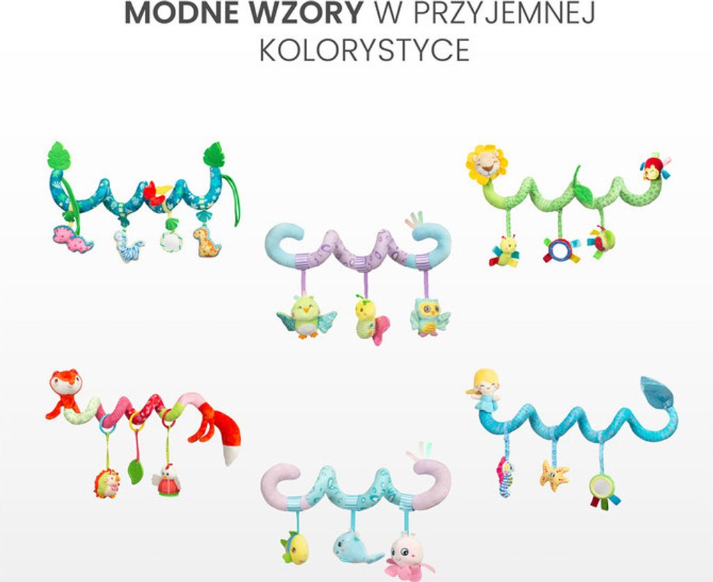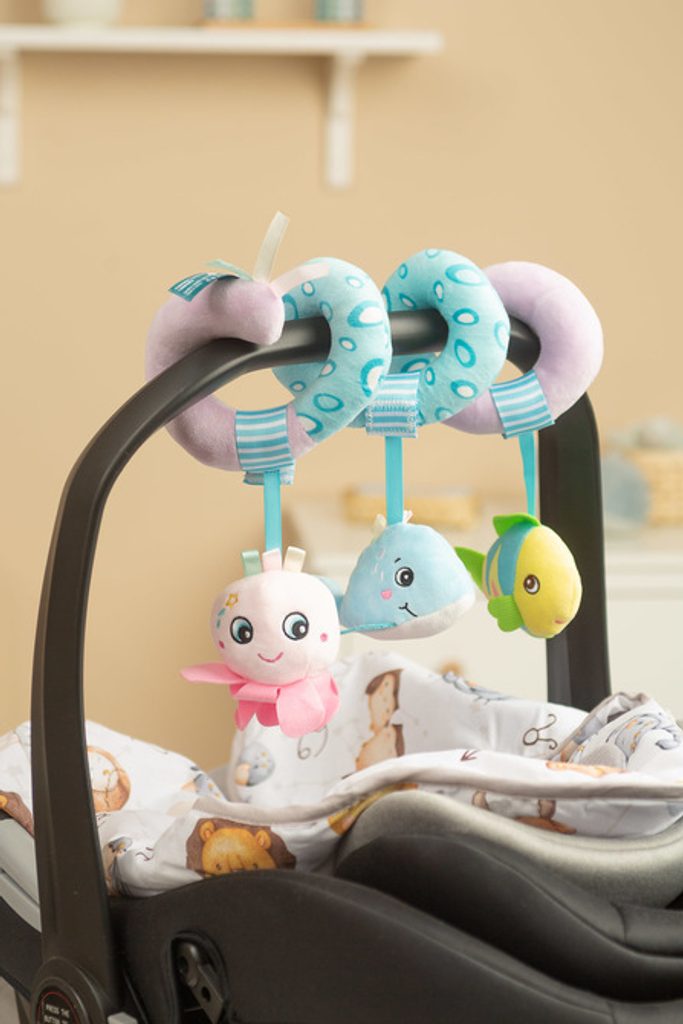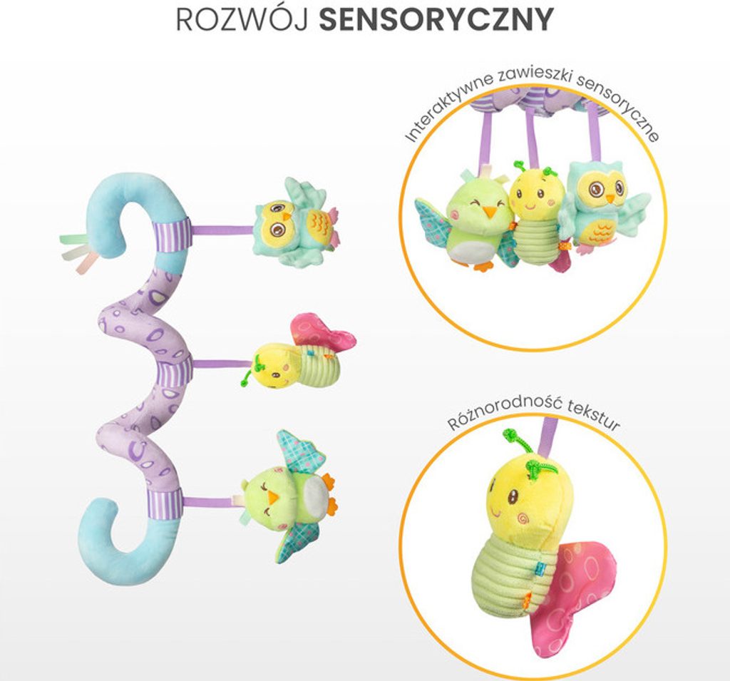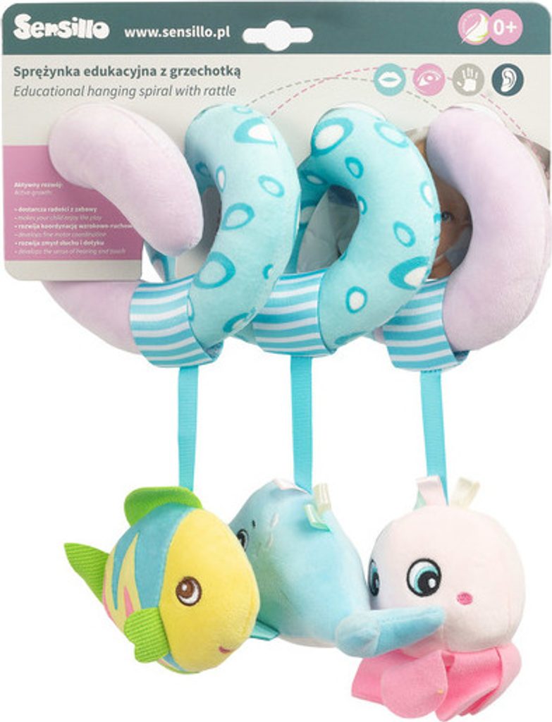 Plyšová hračka spirála Sensillo ve veselých barvách pro vaše miminko. Hračka rozvíjí smyslové vnímání dítěte a podněcuje jeho fantazii. Díky spirálovitému tvaru se dá upevnit na postýlku, autosedačku nebo ke kočárku. Hračky chrastí, šustí. Rozměry cca 20x30 cm.
