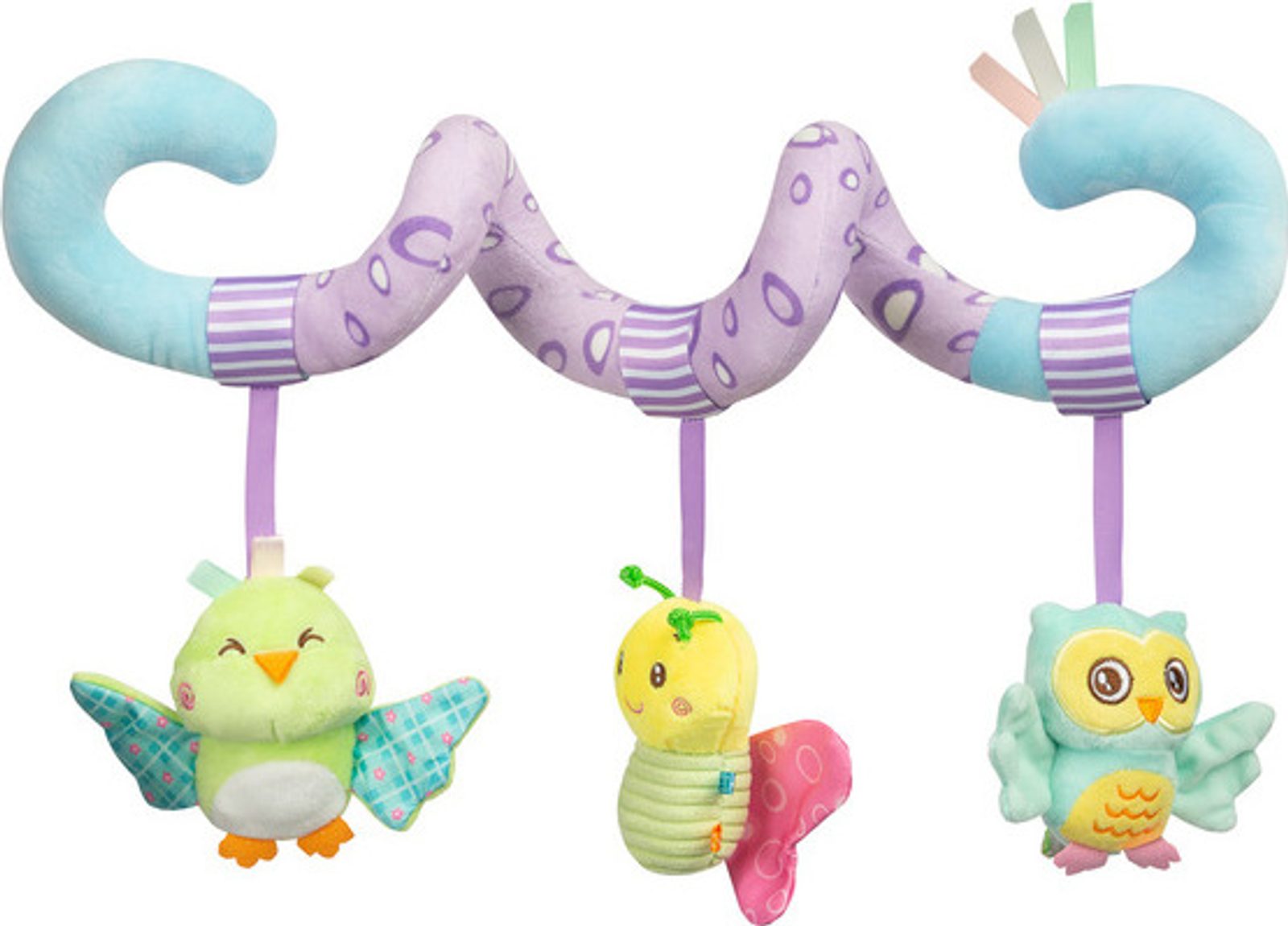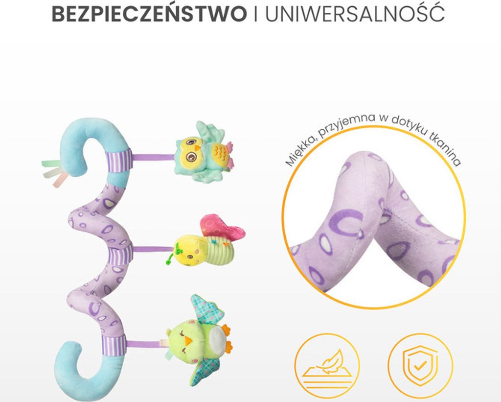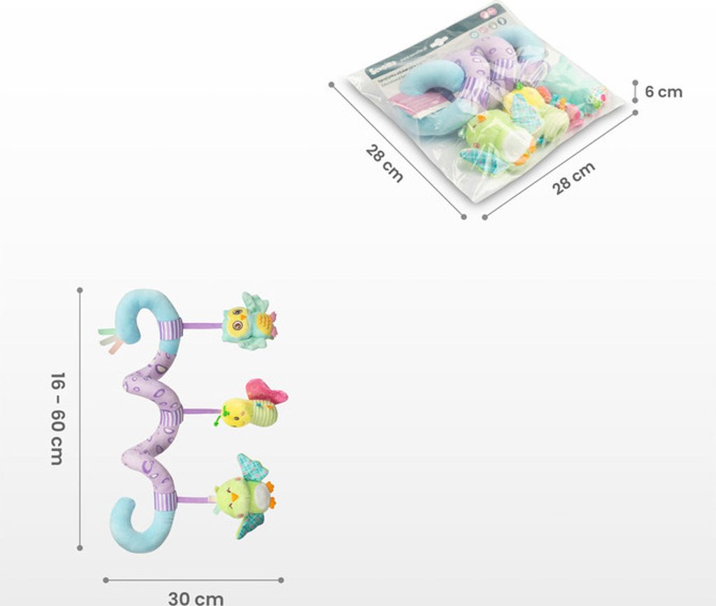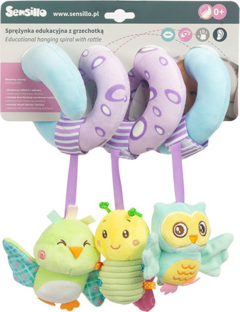 Plyšová hračka spirála Sensillo ve veselých barvách pro vaše miminko. Hračka rozvíjí smyslové vnímání dítěte a podněcuje jeho fantazii. Díky spirálovitému tvaru se dá upevnit na postýlku, autosedačku nebo ke kočárku. Hračky chrastí, šustí. Rozměry cca 20x30 cm.