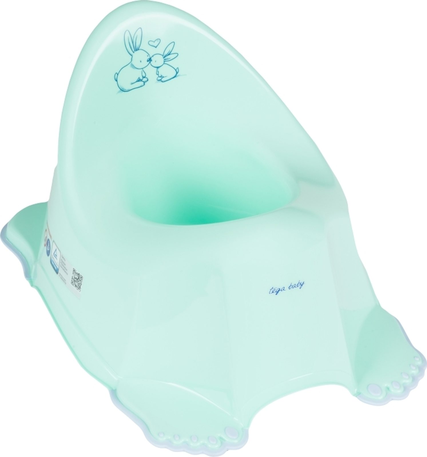 Dětský nočník Bunny s obrázkem králíčků a v krásných pastelových barvach. Je lehký, kompaktní a díky svému tvaru, vysoké opěrce zad a širokému sedátku poskytuje dětem pohodlí. Spodní strana má protiskluzovou úpravu pro větší bezpečí Vašeho dítěte. Nočník po vyčurání hraje melodii, což je praktické zejména v době, kdy se dítě učí teprve na nočník chodit. Rozměry dxvxš cca 38x23x25 cm.