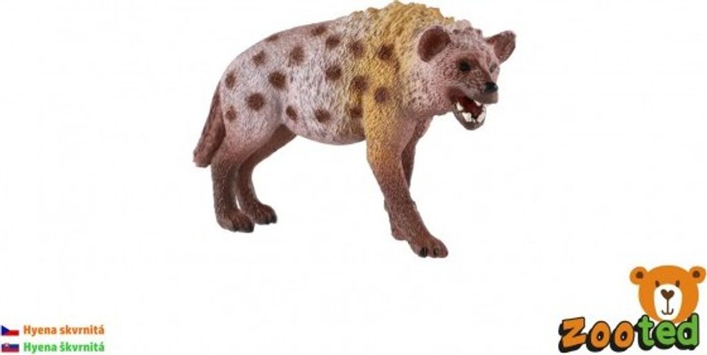 Hyena skvrnitá je poměrně velké zvíře s robustní stavbou těla; měří 95–166 cm, samotný ocas přibližně 40 cm, v kohoutku pak kolem 70–92 cm. Hmotnost se pohybuje nejčastěji mezi 45 a 70 kg. Jsou aktivní především za soumraku a v noci, neplatí to však bez výjimky. Většinu dne tráví hyeny v podzemních norách, které si samy hrabou. Pokud však mají možnost, rády obsadí opuštěnou noru hrabáče, dikobraza či prasete bradavičnatého a rády se před svými doupaty sluní. Hyeny buď aktivně loví, nebo vyhledávají mršiny.