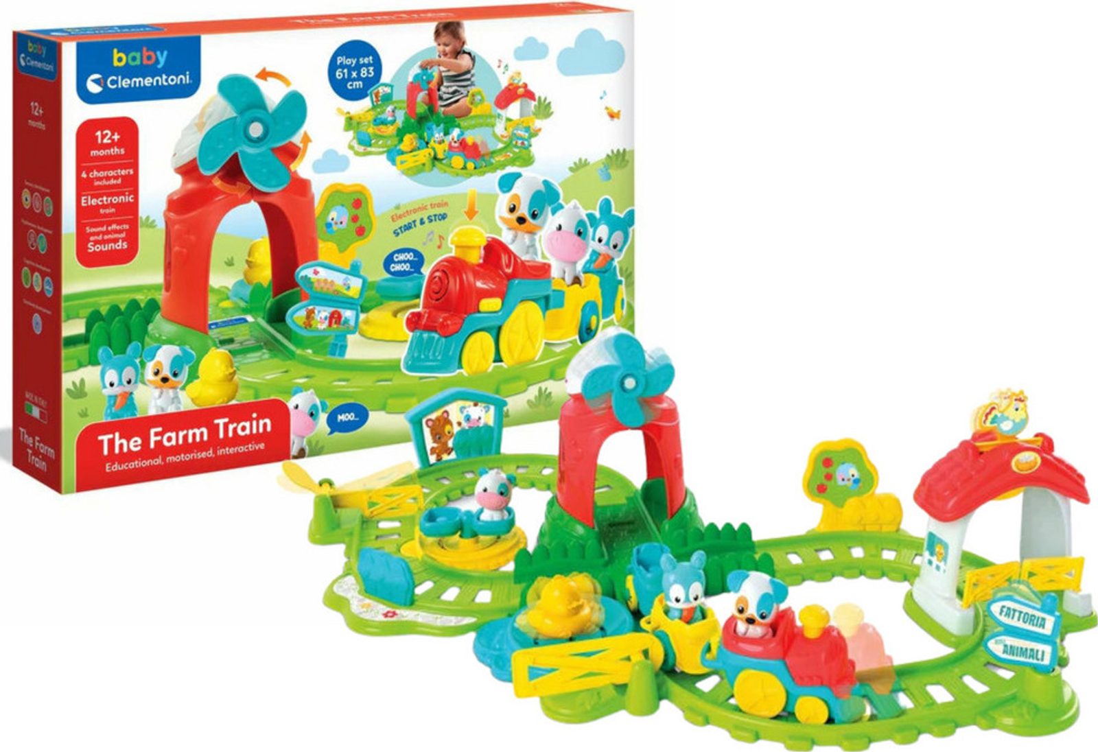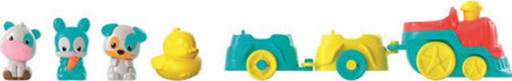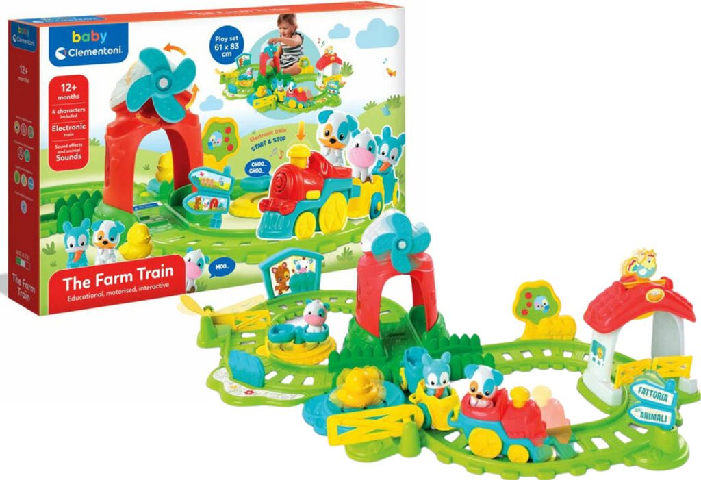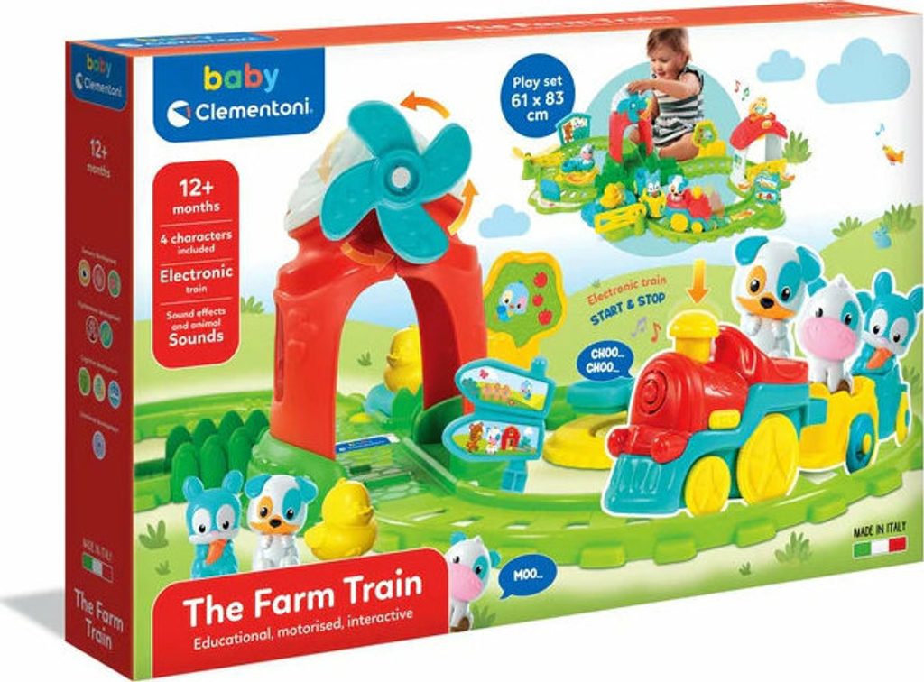 Vláček se řítí po trase plné atrakcí, která je herní kulisou zasazenou do světa farmy. Po doteku komína se vláček vydává na fantastické dobrodružství v doprovodu svých kamarádů: psa, krávy, zajíčka a kachničky. Když vlak projede, farma ožije: ramena jeřábů se zvednou, mlýn se začne otáčet a kohout a kachnička vydávají své charakteristické zvuky. Když se zavřou žlutá vrata, kachňátko začne „plavat“ přes rybník a kolotoč se roztočí. Tohle je prostě zábava. Stimuluje manuální zručnost a koordinaci oko-ruka a podněcuje představivost.