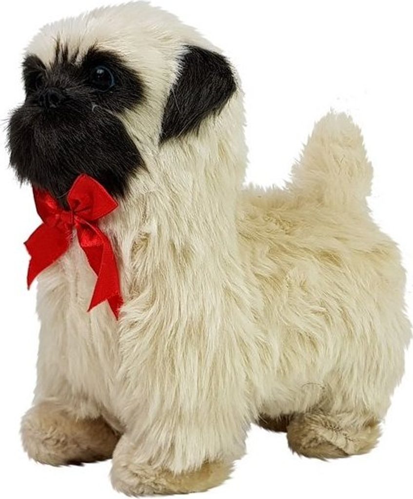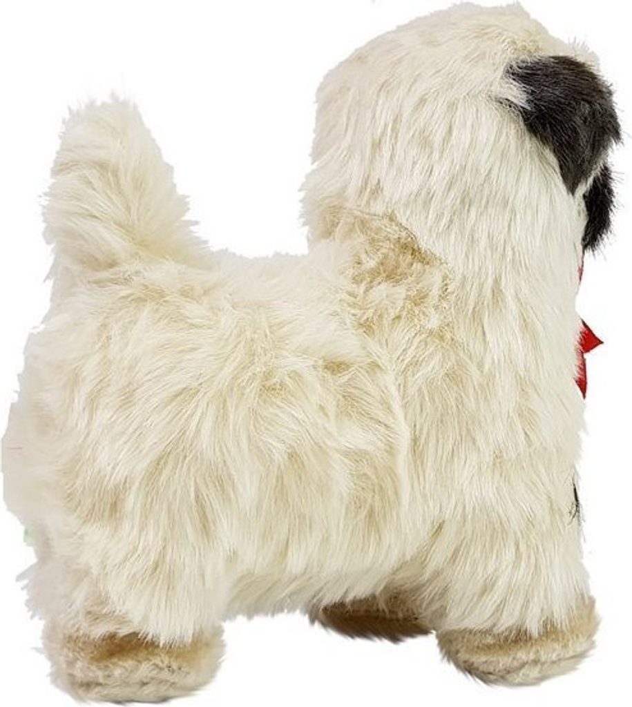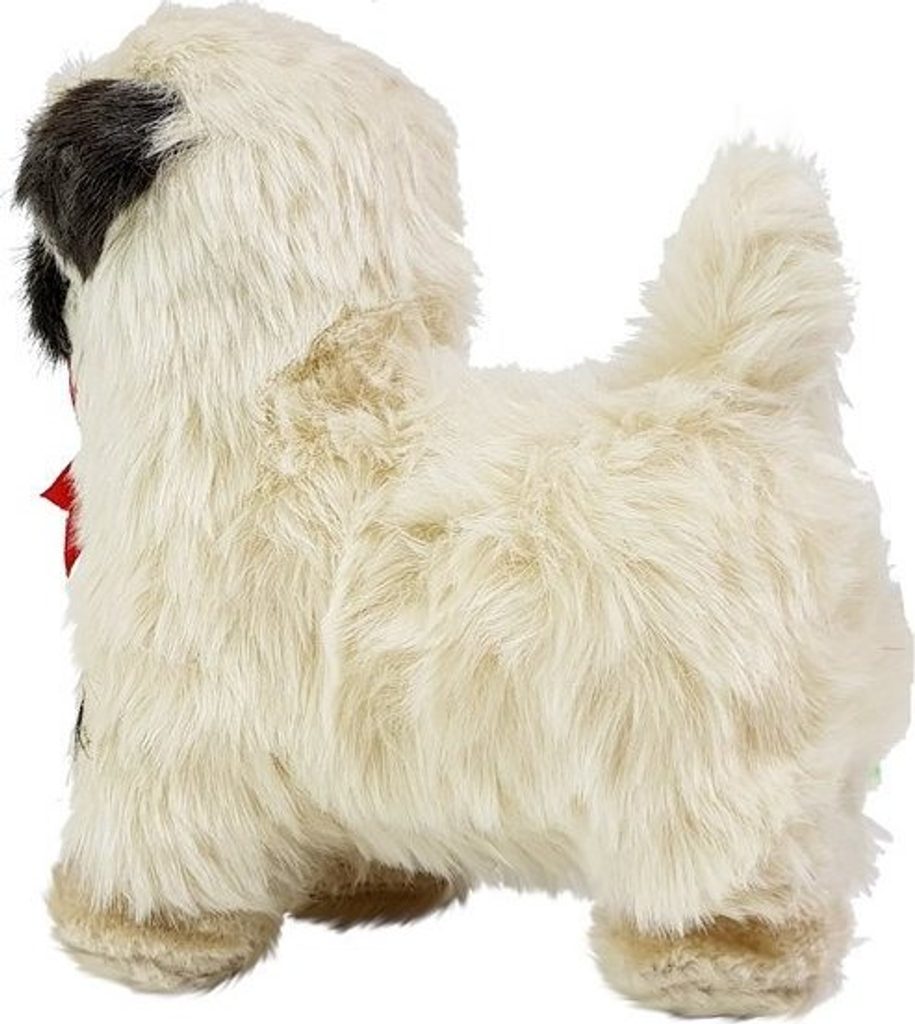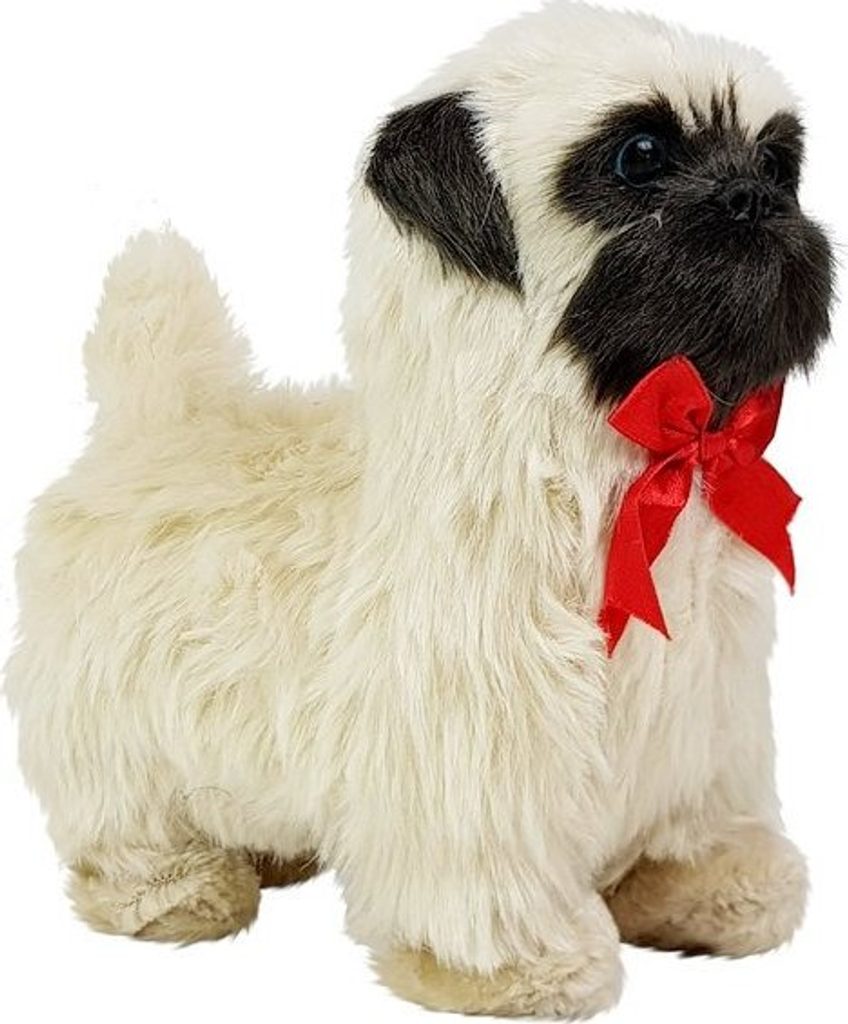 Pes má krémově zbarvenou srst, s prvky černé na obličeji a uších, barva očí je tmavě hnědá a upoutá. Napodobuje skutečného psa tohoto plemene. Půvab mu navíc dodává krásná červená mašlička kolem krku.