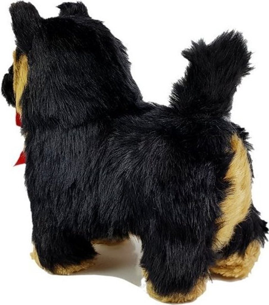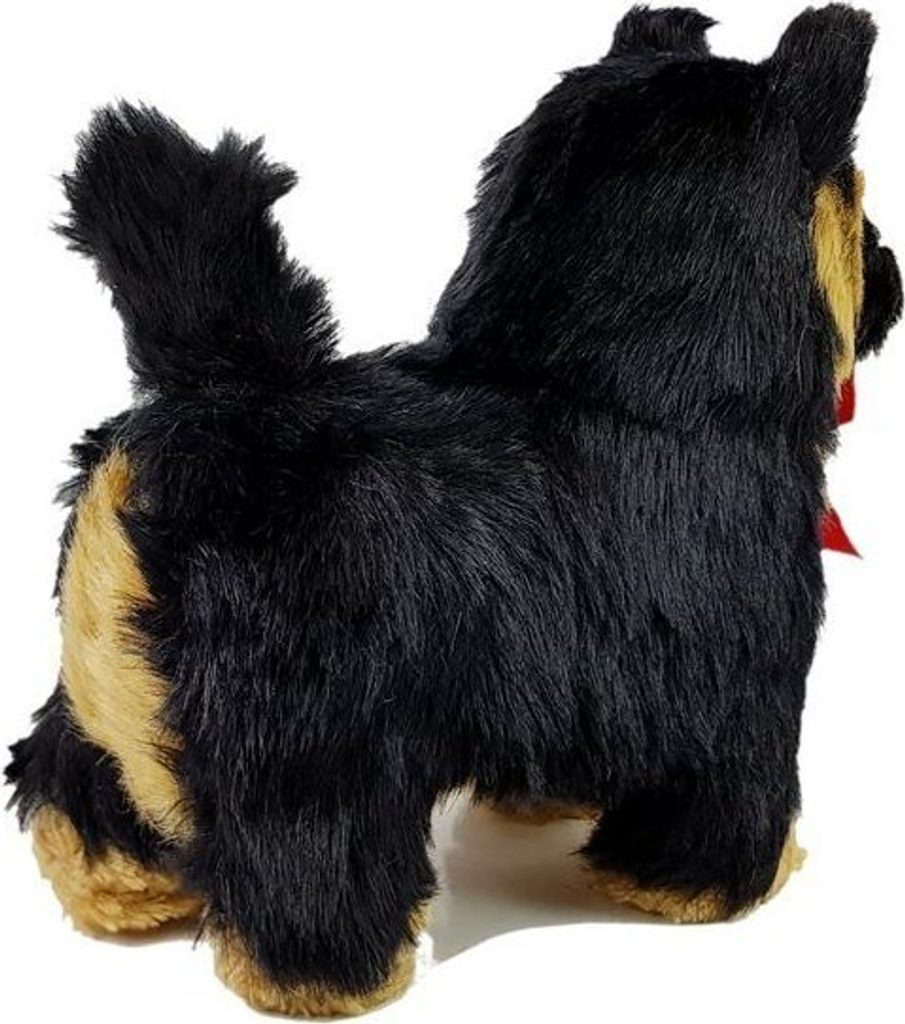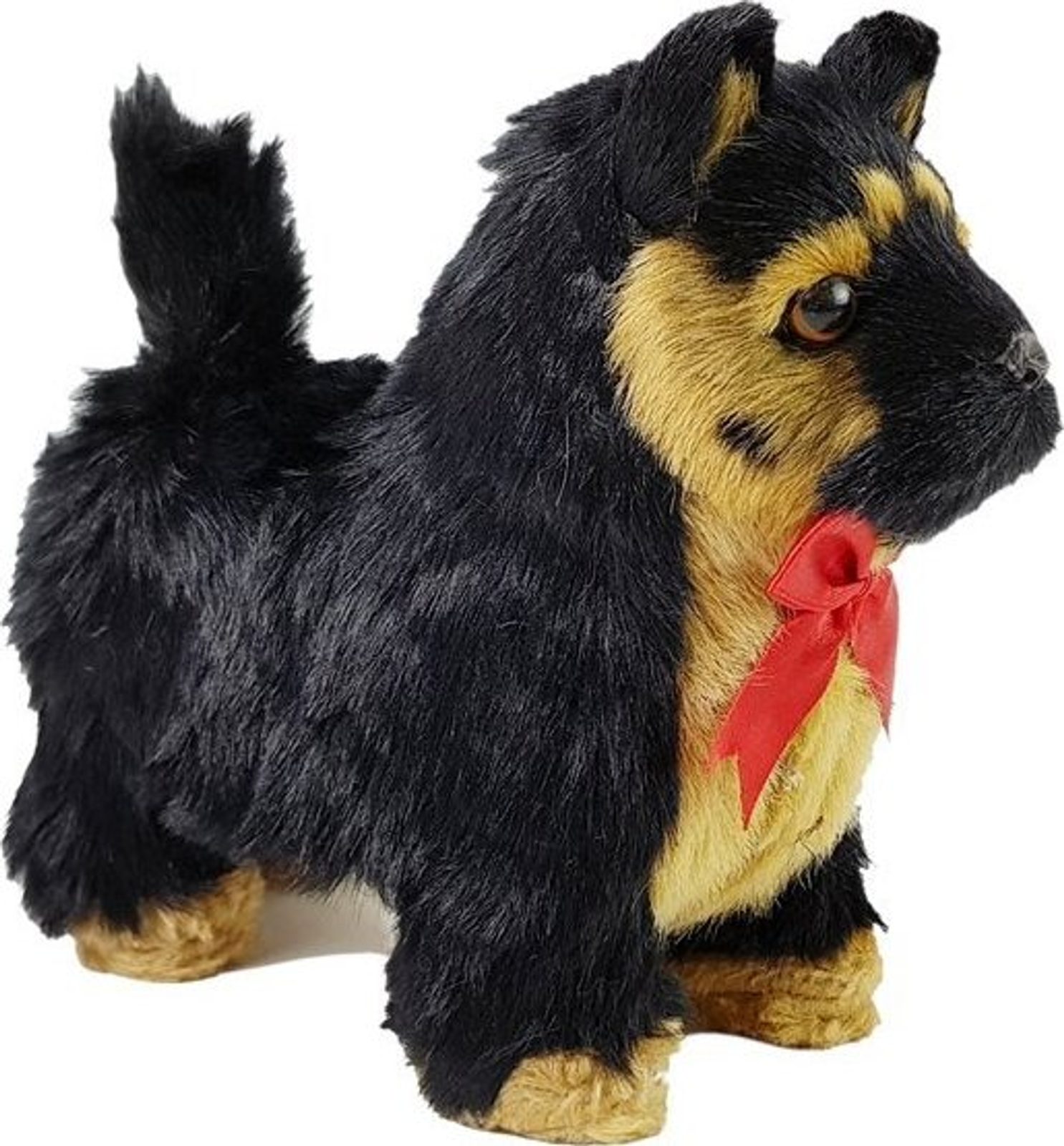 Pes má černohnědou srst, tmavě hnědé oči, téměř černé, přitahuje pohled. Napodobuje skutečného psa tohoto plemene. Půvab mu navíc dodává krásná červená mašlička kolem krku.