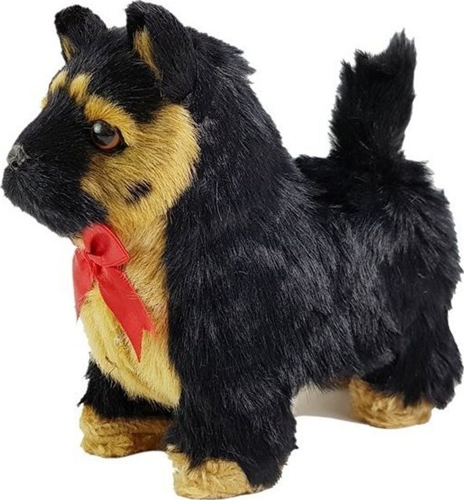 Interaktivní plyšový pejsek německý ovčák Pokud vaše dítě sní o vlastním mazlíčkovi - starat se o něj, chodit na dlouhé procházky. Interaktivní německý ovčák je skvělý parťák na hraní! Pomůžeme vám splnit jeho sen. Aktivuje se při dotyku, hlazením začne štěkat, pohybovat hlavou a ocasem. Při každém kontaktu pes zareaguje. Po přitlačení na stranu na břicho však pes pohybuje tlapkami, jde dopředu, štěká a v pozadí hraje přátelská hudba! Skvělá nabídka pro vaše dítě, která mu nejen vykouzlí úsměv na tváři, ale bude také zmenšeninou skutečného německého ovčáka . Možná se stane jeho přítelem? To bude začátek mít vlastního psa a naučit se zodpovědnosti za zvíře zábavou a svědomitostí při plnění povinností, to se v budoucnu vyplatí.