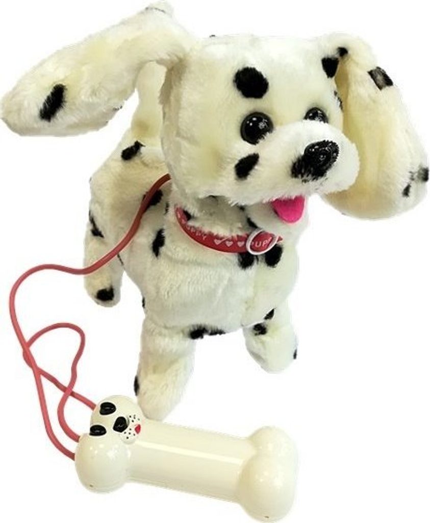 Interaktivní plyšový pes s vodítkem - dalmatín Pokud vaše dítě vždy snilo o vlastním mazlíčkovi – starat se o něj, chodit na dlouhé procházky a především se společně bavit, interaktivní pejsek na vodítku bude skvělý nápad. Tato hračka pomůže vašemu dítěti získat dovednosti potřebné k tomu, aby mělo vlastního mazlíčka. Hra s plyšovým psem ho naučí zodpovědnosti a pečlivosti v péči, což bude v budoucnu velmi důležité. Hračka má mnoho výhod - pejsek vesele chodí, hýbe ocáskem a vydává roztomilé zvuky, což bude jistě skvělá zábava pro každé batole. Pejsek na vodítku je vyroben z měkkého a netoxického materiálu, který je velmi příjemný na dotek. Zvíře má velké tmavé oči, vyčnívající ocas a velký nos, který jemně jiskří. Zdobí ho červený límec, který mu dodává kouzlo. Hračka má dlouhé vodítko zakončené vypínačem ve tvaru kostky, díky kterému může dítě svého pejska snadno ovládat. Díky této možnosti se hra jeví jako velmi reálná a pro dítě především zajímavá. Pejsek má také růžovou mašličku, která výrazně zvyšuje půvab hračky.