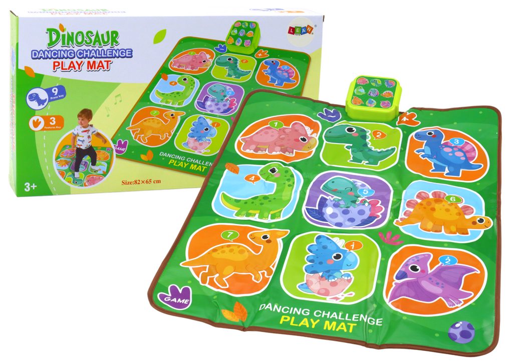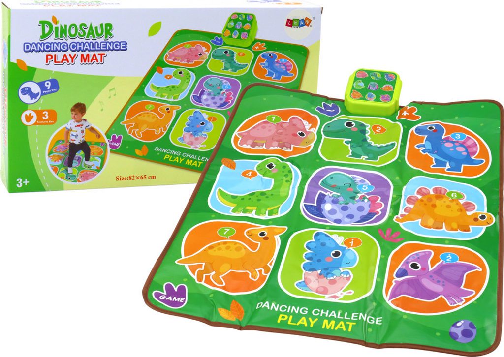 Dinosauří taneční podložka - Dancing Challenge je neobyčejná hračka, která děti přenese do světa hravých dinosaurů a zároveň jim nabídne interaktivní a podnětnou zábavu. Tato podložka zdobená barevnými motivy dinosaurů nejen přitahuje pozornost, ale také podněcuje představivost a podporuje aktivní účast na hře.