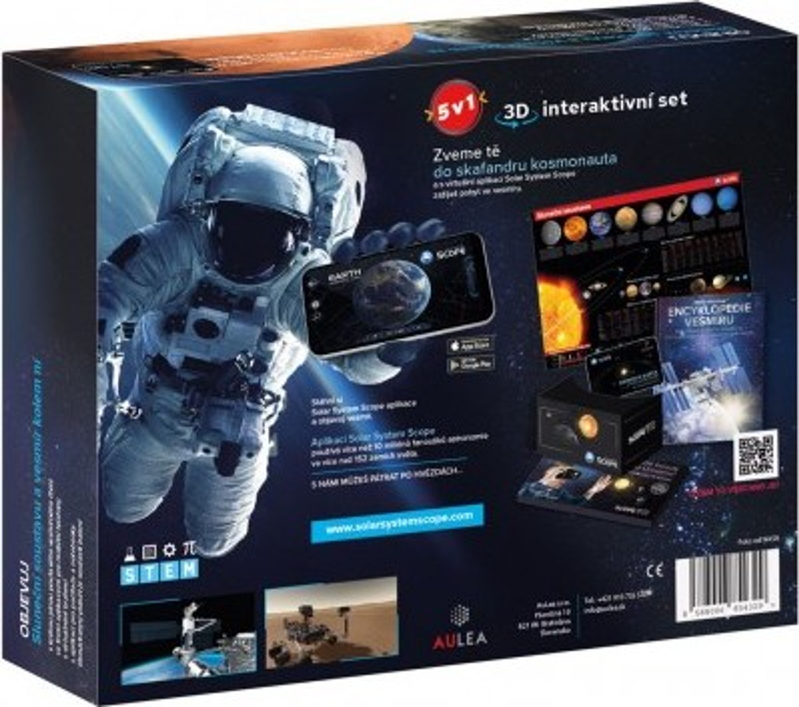 Součástí balení jsou 4 vesmírné aplikace z toho 3 pro chytré telefony a 1 pro stolní počítače a notebooky. Kniha Encyklopedie vesmíru (192 stran).