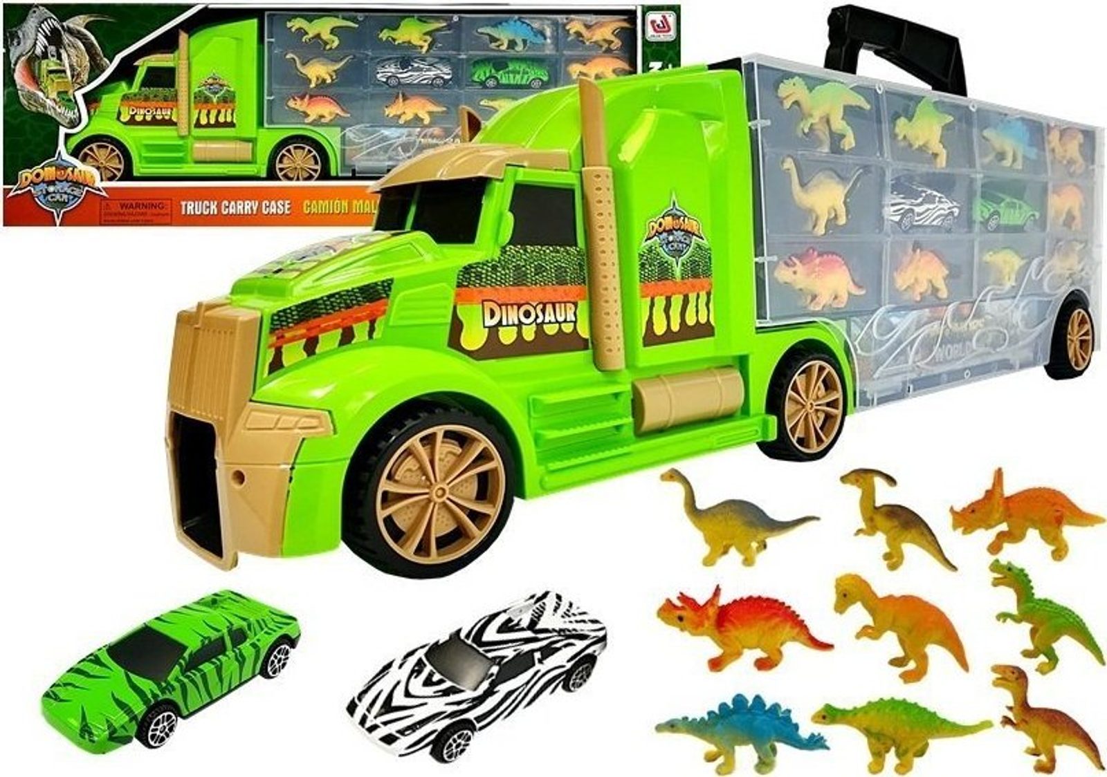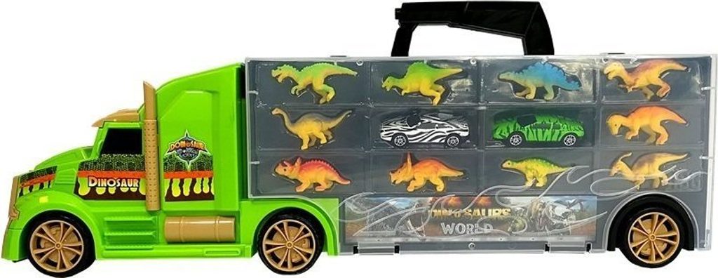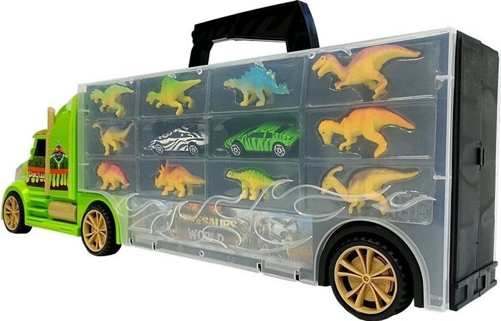 Kamion má mnoho funkcí, které bude vaše dítě zvědavě objevovat. Dvě auta navíc vám umožní zažít nevšední dobrodružství s dinosaury.