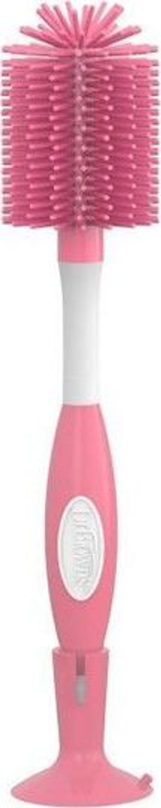 Kartáček Dr. Brown na čištění lahví s měkkými silikonovými štětinami, které zajistí 100% čištění lahví a nádob bez poškrábání a znehodnocení. Byl navržen pro všechny láhve Dr. Brown. Díky němu efektivně odstraníte veškeré nečistoty. Správně profilovaný hrot se dostane do těžko dostupných míst a pohodlná protiskluzová rukojeť zajišťuje stabilní úchop. Má žebrovanou špičku pro čištění. Kartáč je dodáván s přísavkou pro pohodlné uložení ve svislé poloze. Vyrobeno z odolných a bezpečných materiálů, které neobsahují Bisfenol A. Lze mýt v myčce na horní polici. Dodává se v modré a růžové barvě.