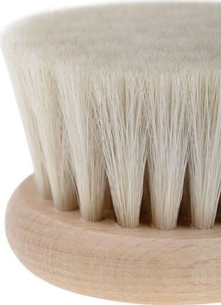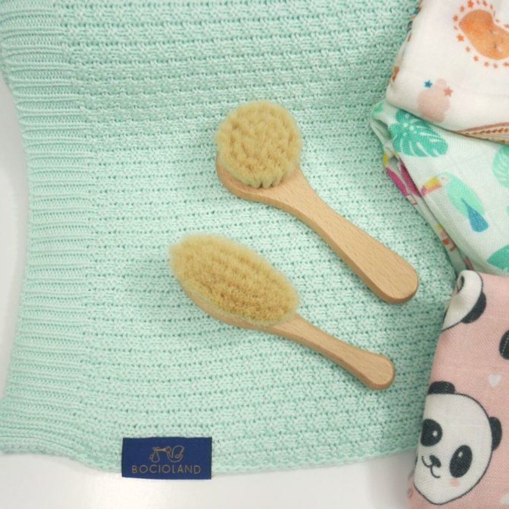 Vyrobeno z přírodní kozí srsti s dřevěnou (bukové dřevo) rukojetí s bezpečným kulatým tvarem. Velikost kartáčku je ideální pro malou hlavičku miminka. Jemné štětiny jsou ideální pro citlivou pokožku a vlasy neelektrizují. Masáž prováděná tímto kartáčem je dokonale uklidňující a uvolňující a je příjemná pro matku i dítě.