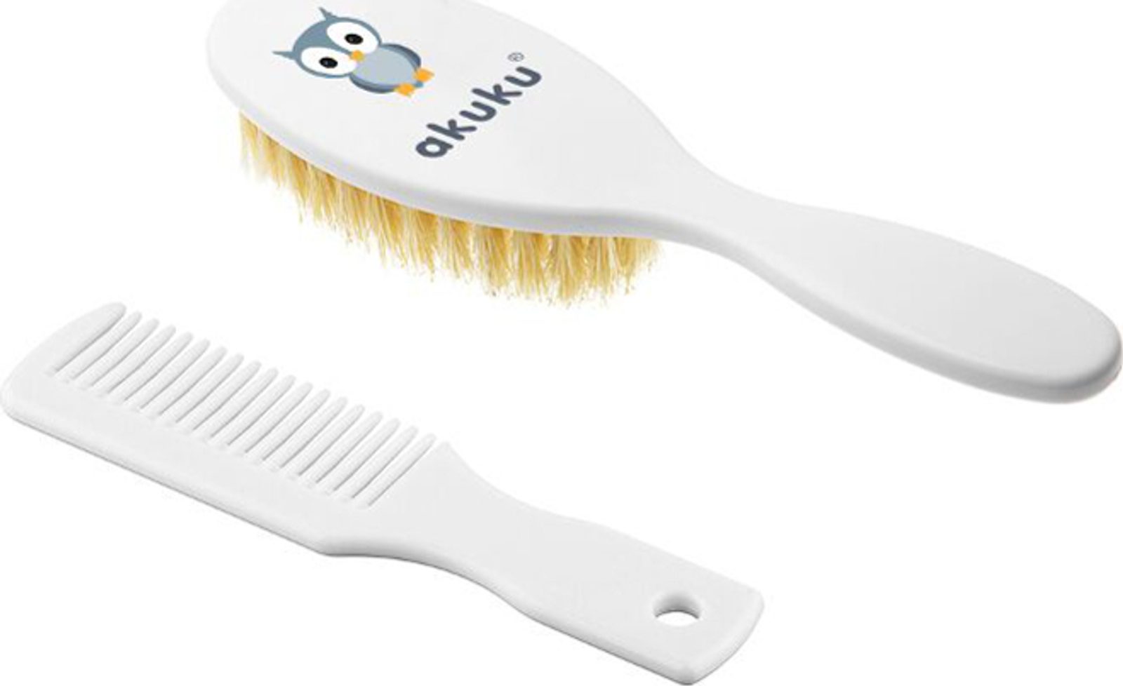 Kartáček a hřebínek s přírodním vlasem Akuku SOVY BÍLÉ