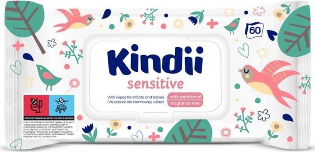 Kindii Sensitive od Cleanic jsou jemné ubrousky vytvořené speciálně pro jemnou pokožku novorozenců a kojenců.Ubrousky mají hydratační účinek a neobsahují PEG, parabeny a alkohol, díky čemuž jsou vhodné od prvních dnů života miminka. Obsah jemných chemolientů pomáhá udržovat přiměřenou úroveň lubrikace a hydratace pokožky. Chrání před vysušením a podrážděním, účinně a jemně, osvěží dětskou pokožku.Kindii Sensitive jsou extrémně jemné a velké ubrousky, které byly dermatologicky testovány, díky čemuž jsou zcela bezpečné pro citlivou pokožku miminek