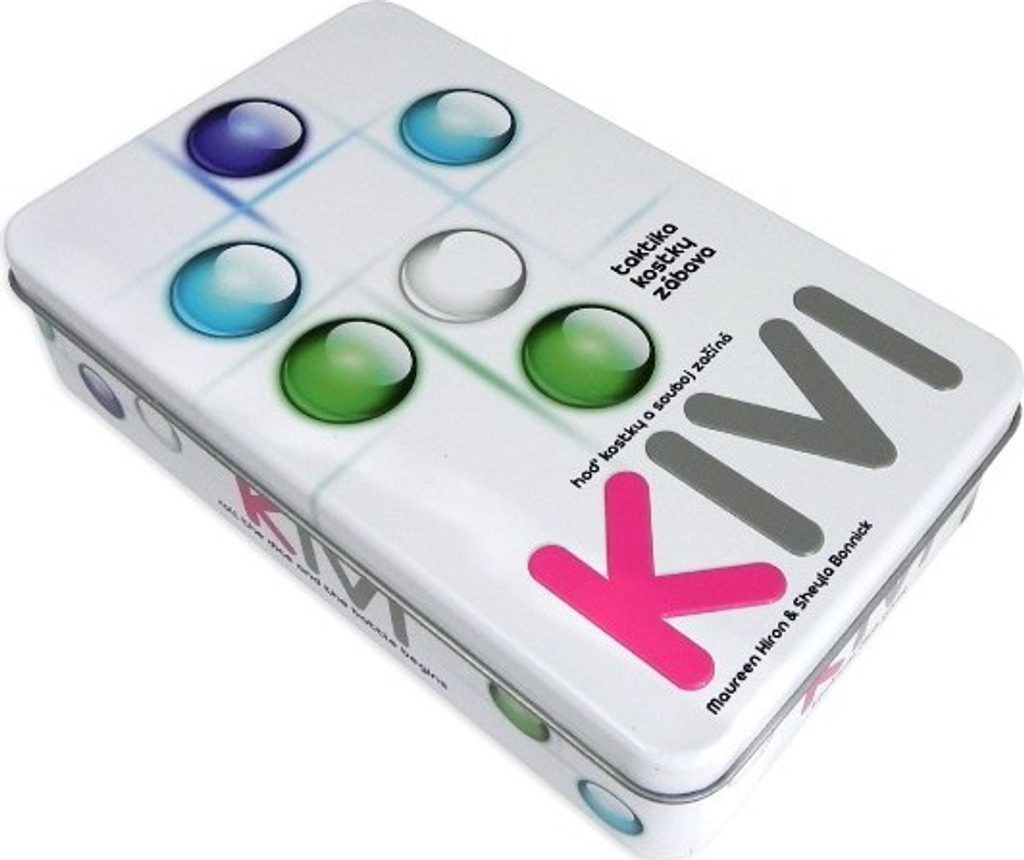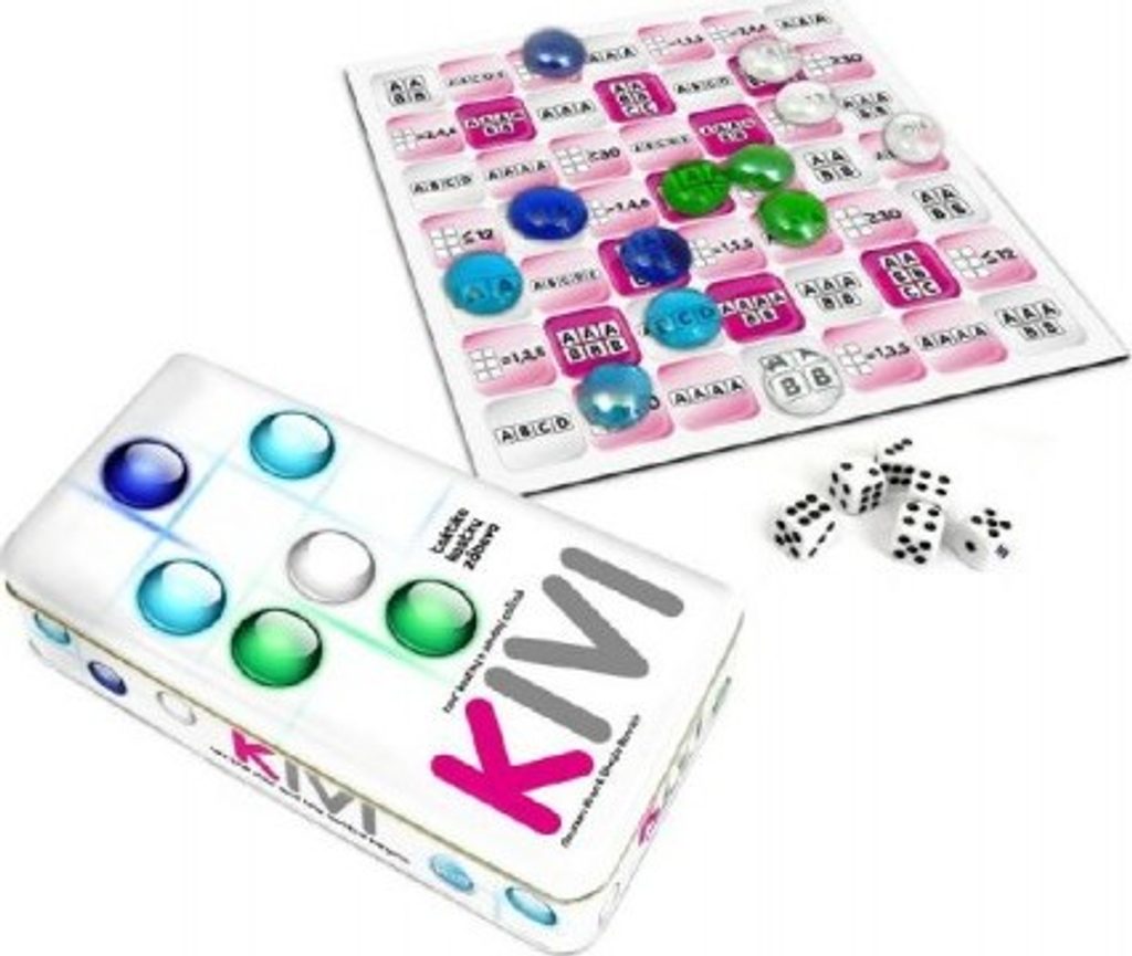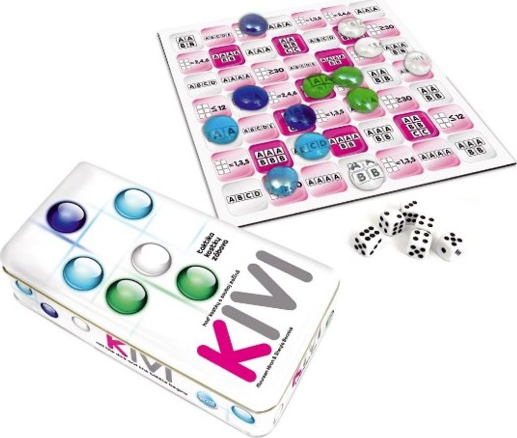 Kivi je taktická hra s kostkami, při níž hráči získávají body stavěním souvislých řad z průhledných kamenů. Vrh kostek a taktika určují, kam hráč kámen umístí. Budovat vlastní řadu, nebo blokovat jiného hráče? Jednoduchá pravidla a nepřeberné množství kombinací zaručují vzrušení až do posledního tahu, protože tahle hra je GENIÁLNÍ! Plechová krabička obsahuje protiskluzový herní plán, 6 kostek, 40 kamenů (10 od každé barvy). Hra je určena pro 2 - 4 hráče, trvá cca 30 minut, doporučený věk 8 - 99 let.