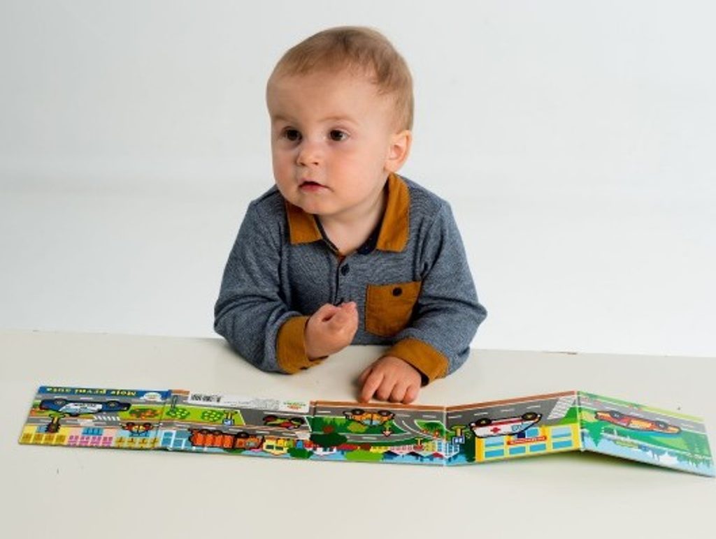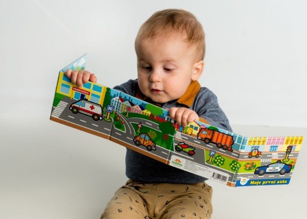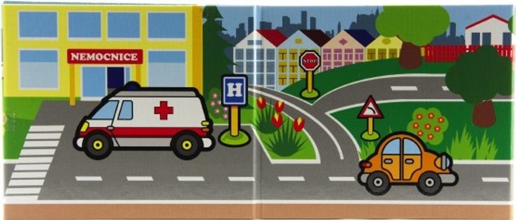 Leporelo pro malé děti s obrázky aut, ve kterém se seznámí s auty jezdícími na silnici. S leporelem plným obrázků se okolní svět stane předmětem jejich zájmu a učení nových slov pro ně bude hrou.