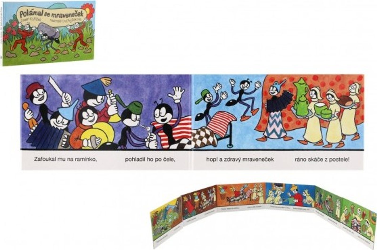Klasické leporelo o malém mravenečkovi s ilustracemi Ondřeje Sekory. Dnes už klasické leporelo vypráví příběh o malém mravenečkovi, který je celý polámaný. Přijde ho léčit mravenčí doktor, ale nakonec mu pomůže přátelské pohlazení jeho kamaráda . Srozumitelné, přehledné a hravé leporelo nakreslil známý tvůrce Ferdy Mravence Ondřej Sekora. Rozměr složeného leporela: 16 x 9 cm. Vhodné od 24 měsíců