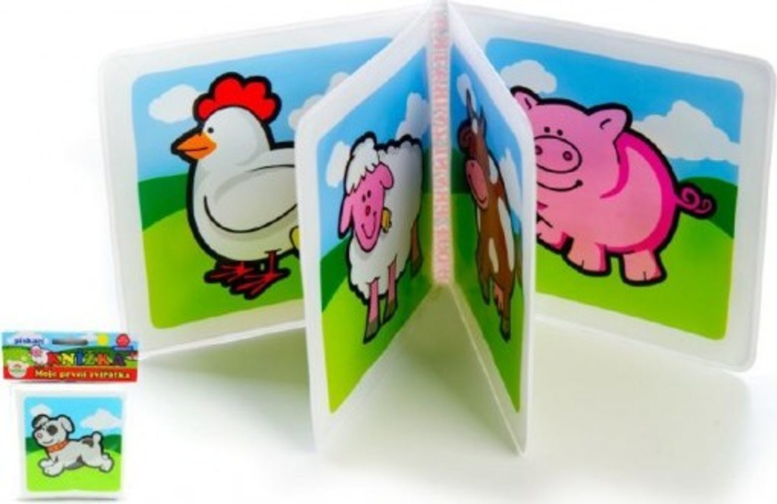 Pískací knížka s pestrými obrázky zvířátek zaujme dětskou pozornost a rozvíjí fantazii. Velikost: 13 x 12,5 cm. Vhodná od 0 měsíců, je bez ftalátů a řádně ceritikovaná.