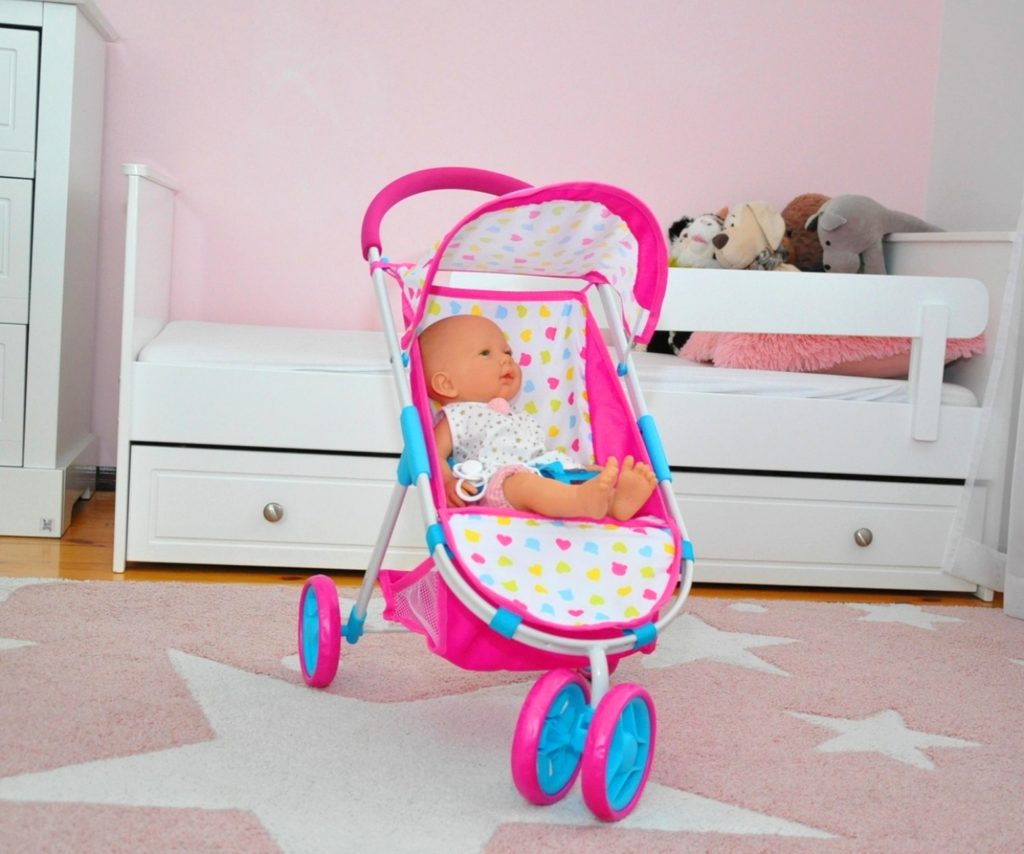 Kočárek pro panenky Susie od Milly Mally, vyrobený z vysoce kvalitních materiálů. Funkce a vzhled kočárku pro panenky Susie připomíná skutečný kočárek. Susie je tříkolový kočárek určený pro panenky do délky 50 cm. Použití dvojitých kol v přední části kočárku umožňuje plynulou změnu směru. Kočárek má tříbodové bezpečnostní pásy a "košík" na příslušenství nutné při procházce vč. láhve na mléko, oblečení a plenky. Dodatečně vybavena skládací kabinou. Popis: Kovový rám. Pěnové kroužky. Otočné přední kolo. Rukojeť má pěnový potah. Skládací kapuce. Ochrana proti samoskládání vozíku. Košík na příslušenství. Věk dítěte 3+.Potah z polyesteru - pratelný. Dostupné ve třech barevných variantách - Candy, Prestige, Mint. Rozměry: Celková výška - 63 cm Šířka - 38 cm Délka - 62 cm Hmotnost kočárku 1,2 kg Výška k rukojeti - 63 cm Rozměry balení: 32,5 x 8 x 45,5 cm Hmotnost s obalem - 1,4 kg