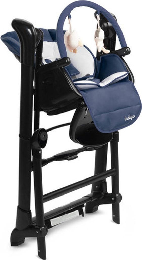 Kojenecké houpací křeslo Indigo Black je jedinečná edice oblíbeného kojeneckého křesla a houpačky pro miminka. Nyní Indigo okouzlí a zaujme rodiče svým stylovým černým rámem, díky němuž se stane jedinečnou ozdobou interiéru. Křeslo Indigo je propracované a navržené s důrazem na detail - pohodlně se používá a je plné užitečných funkcí. Podporuje rodiče a poskytuje pohodlí malému dítěti během jídla a při odpočinku.