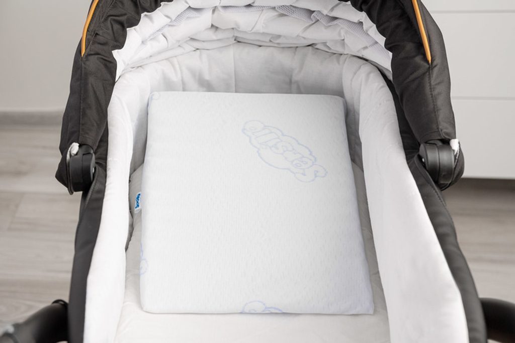 Kojenecký polštář - klín do kočárku Sensillo. Profilovaný tvar zajišťuje správnou polohu páteře. Polštář má potah, který lze sundat a vyprat. Složení povlečení: 100% polyester. Výplň: molitan. Rozměry: šxh cca 30x38 cm, výška v nejvyšším bodě cca 7 cm.