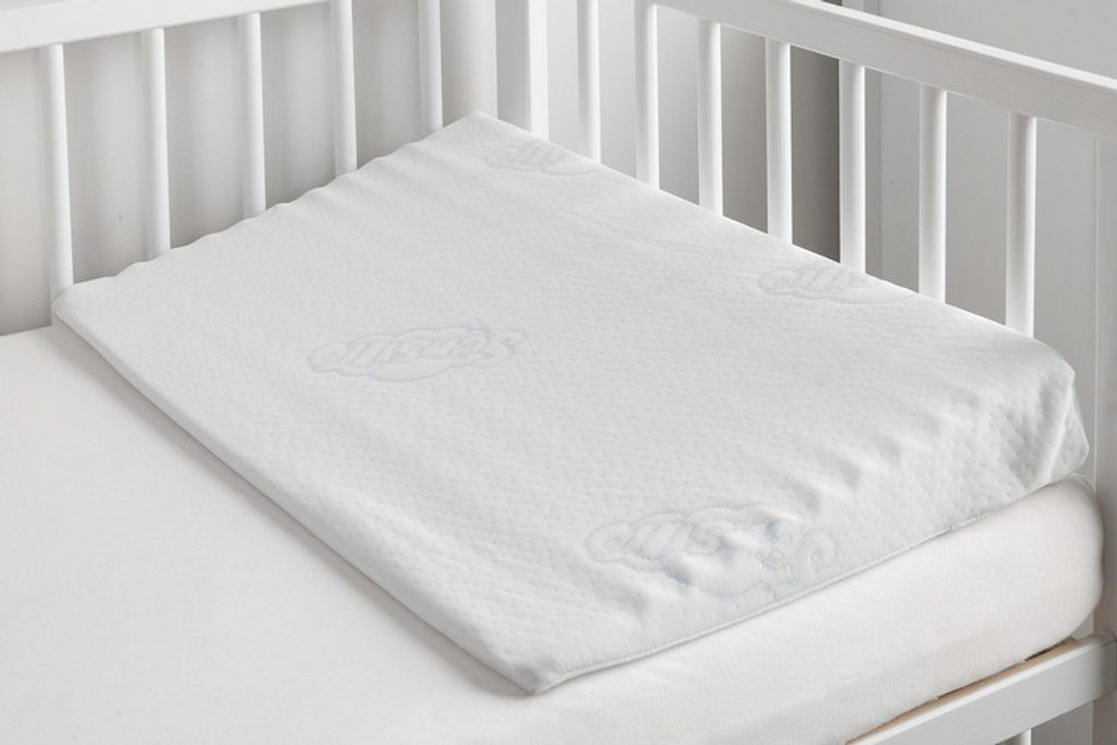 Kojenecký polštář - klín do postýlky Sensillo. Profilovaný tvar zajišťuje správnou polohu páteře miminka. Polštář má potah, který lze sundat a vyprat. Složení povlečení: 100% polyester. Výplň: molitan. Rozměry: šxh cca 59x37 cm, výška v nejvyšším bodě cca 7 cm.