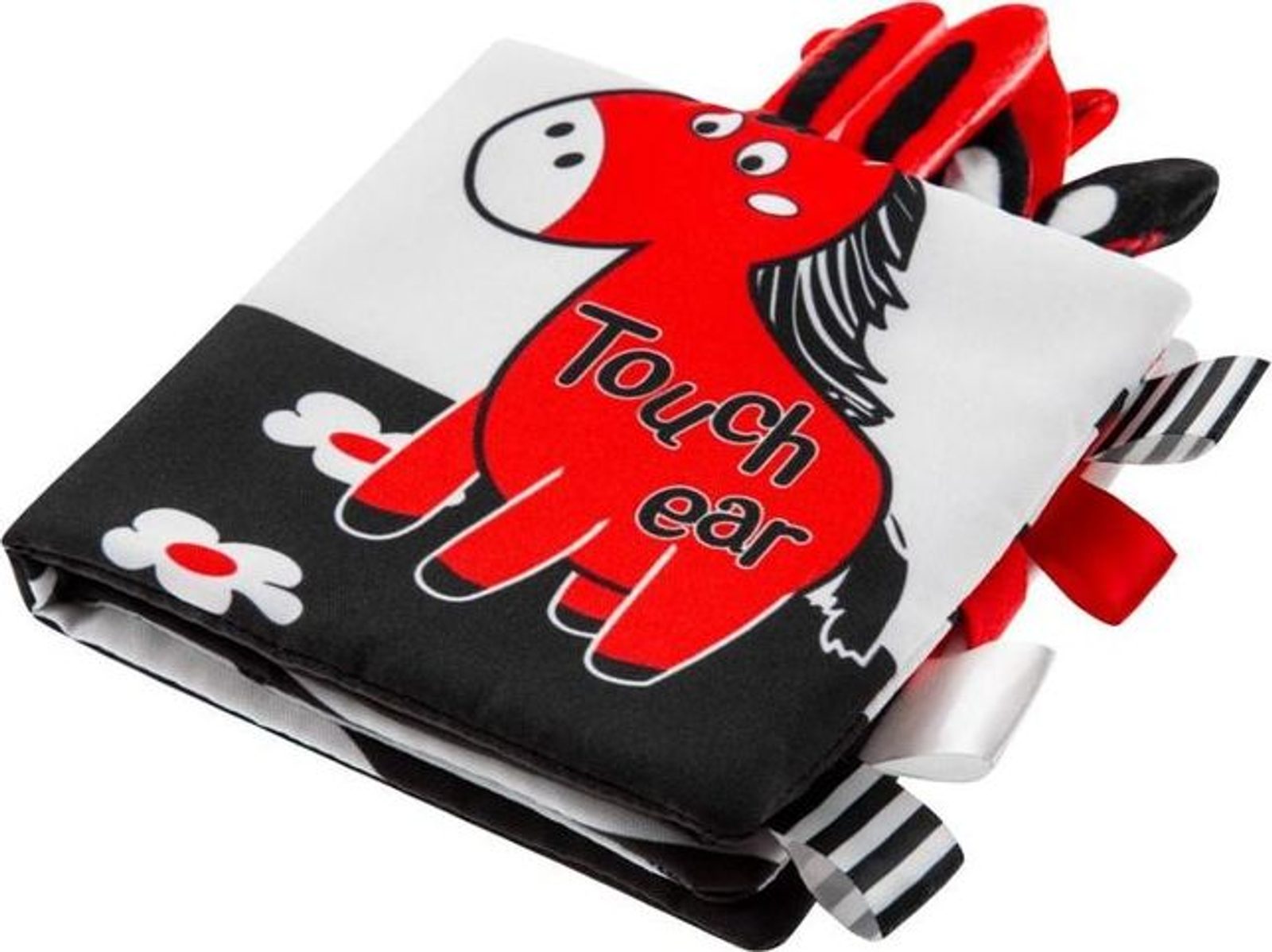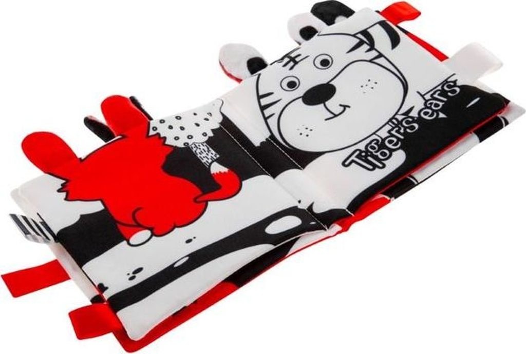 Kniha je vyrobena z měkkého, na dotek příjemného materiálu, v kontrastních barvách, šustí a chrastí. Na každé z 8 stran jsou kontrastní obrázky. Kniha je vhodná pro děti od nejmenšího věku.
