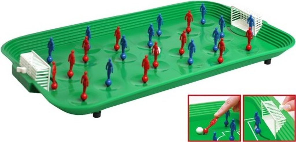 Objevte kouzlo fotbalu s tímto pružinovým stolním fotbalem! Staň se nejlepším fotbalistou světa a vyhraj zápas se svým týmem. Hráči jsou na pružinkách a brankáře lze posouvat ze strany na stranu. Hra pro všechny věkové kategorie potěší malé i velké kluky.