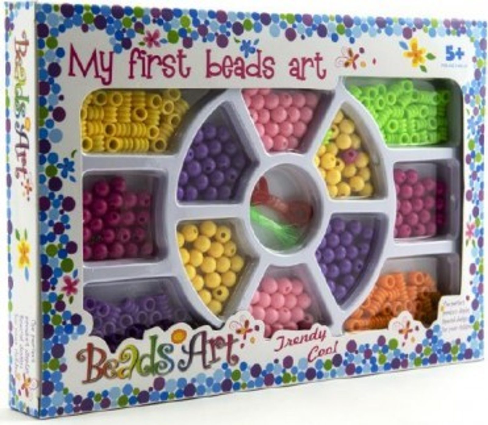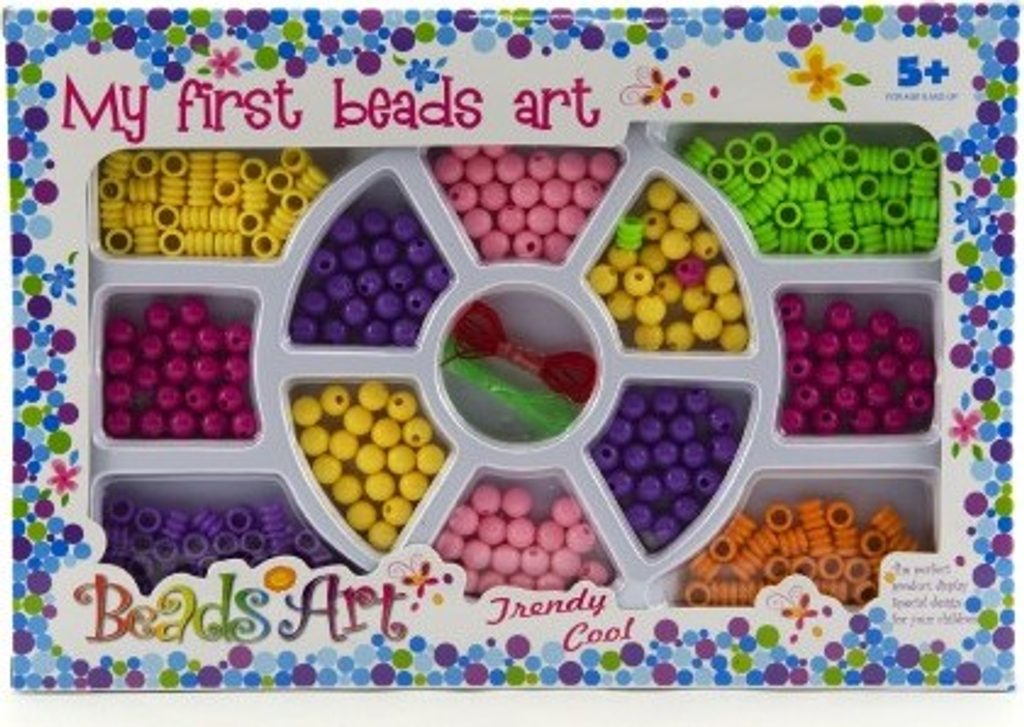 Dřevěné maxiperle různých tvarů se šňůrkou na navlékání v plastové dóze.…
