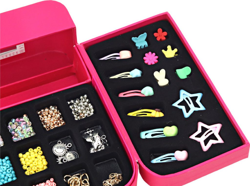 Představujeme unikátní beauty sadu pro tvorbu náramků, zabalenou v elegantní růžové krabičce! Tato kompletní sada obsahuje vše, co vaše dítě potřebuje k vytvoření bezpočtu návrhů šperků a vyjádření své kreativity. Vnitřek krabičky obsahuje spoustu různých korálků a přívěsků, které vás inspirují k vytváření jedinečných designů.