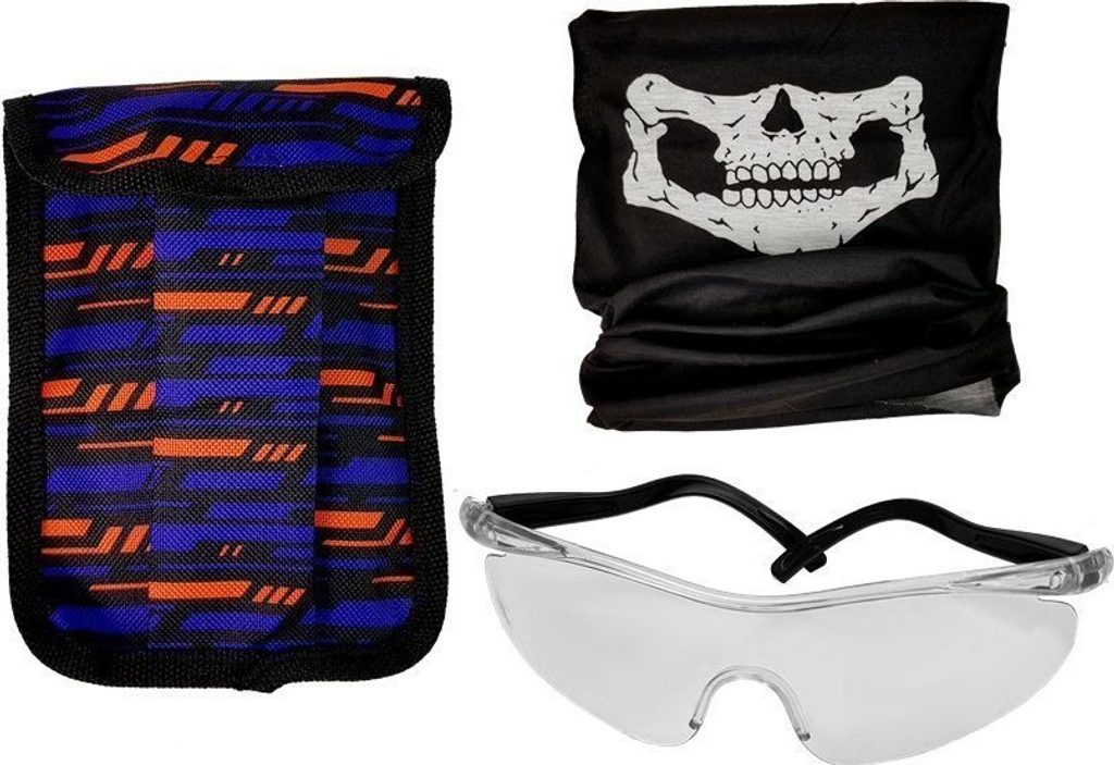 Šátek obsažený v sadě má mnoho použití, včetně: může to být maska, pirátská čepice, šátek, šátek, čelenka nebo čepice. Vesta má suchý zip, díky kterému lze nastavit šířku. Sada navíc obsahuje látkové pouzdro a ochranné brýle.
